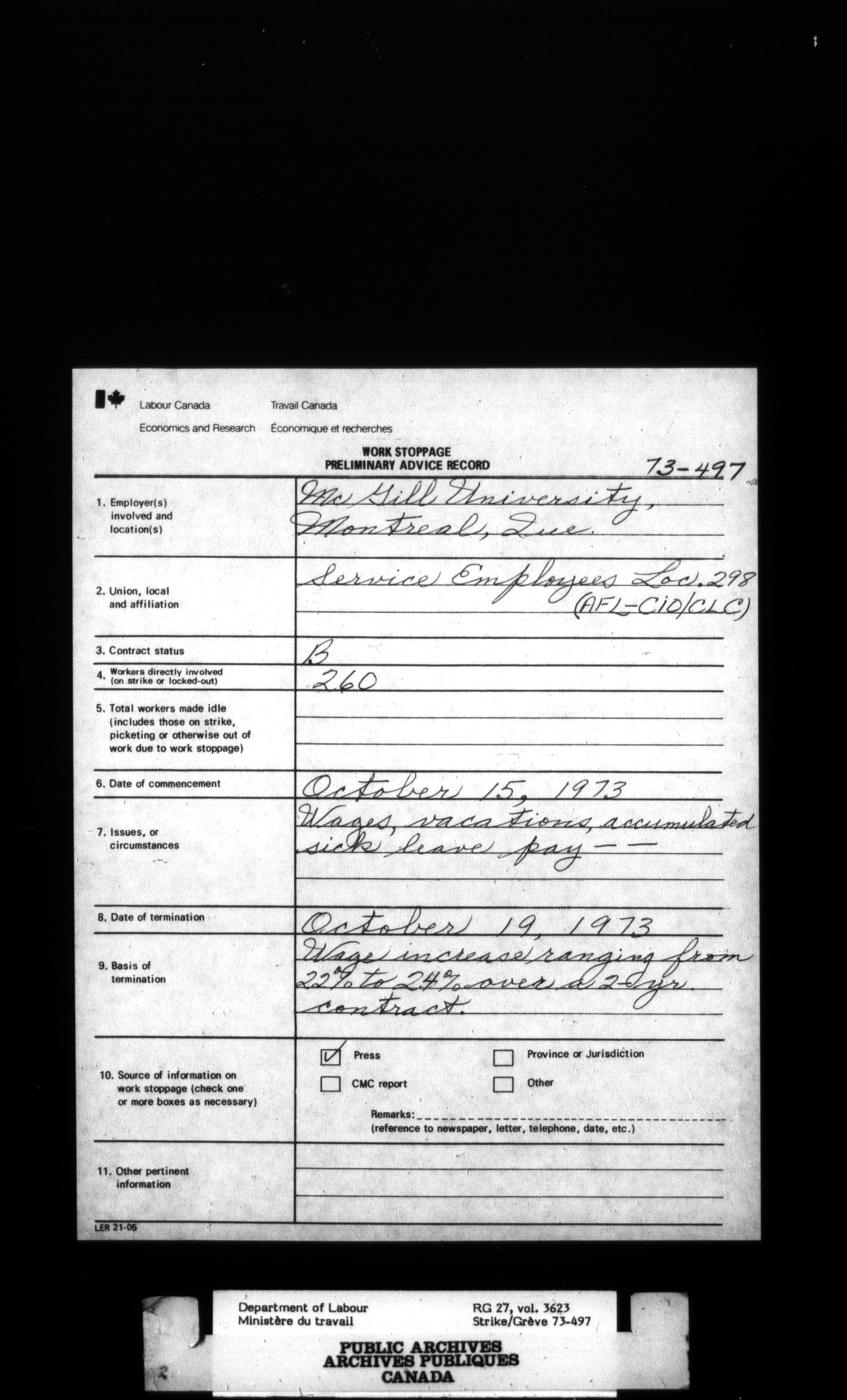 Department of Labour, Economics and Research Branch : Strikes and lockout files - 3459