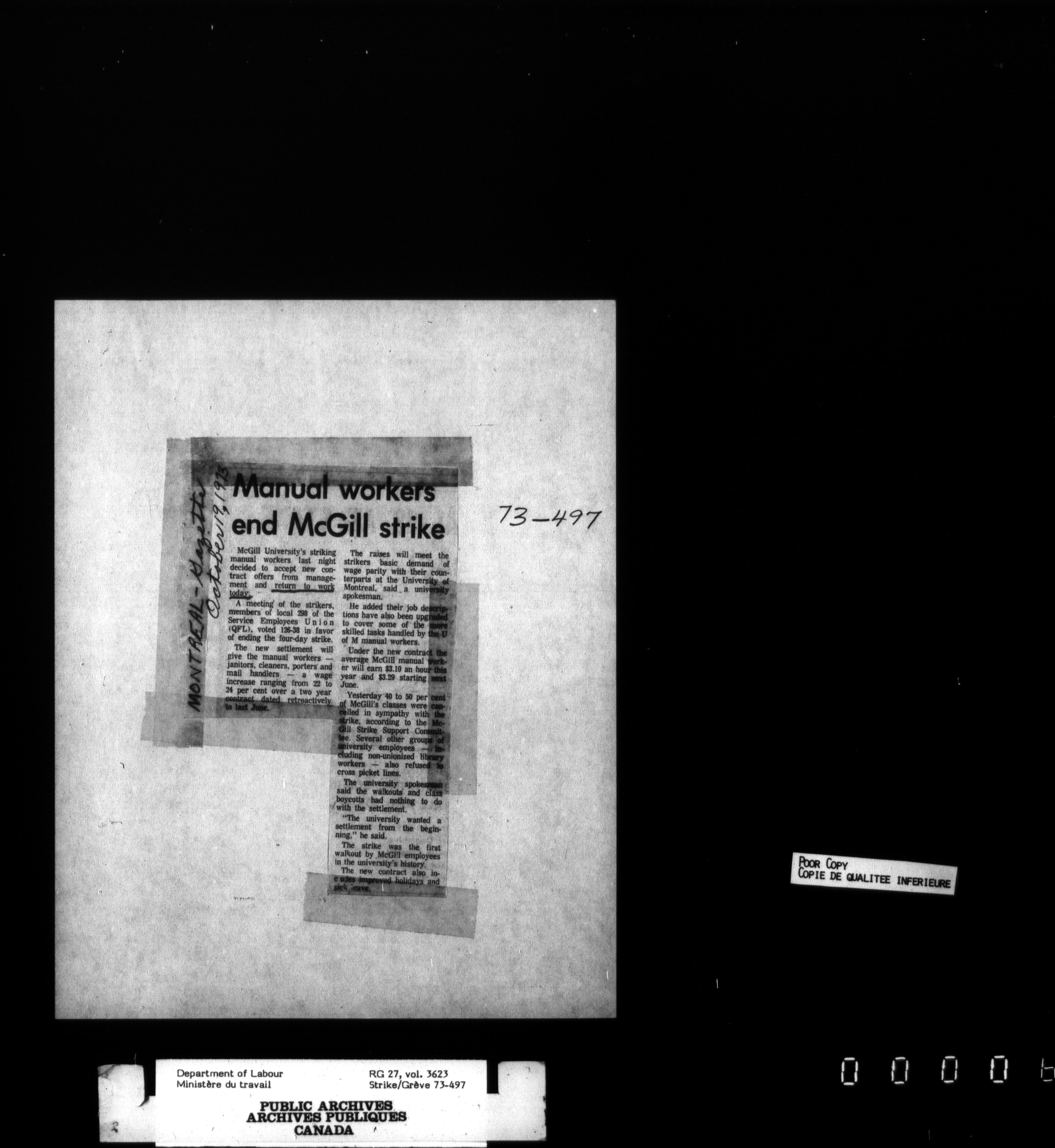 Department of Labour, Economics and Research Branch : Strikes and lockout files : T-3459