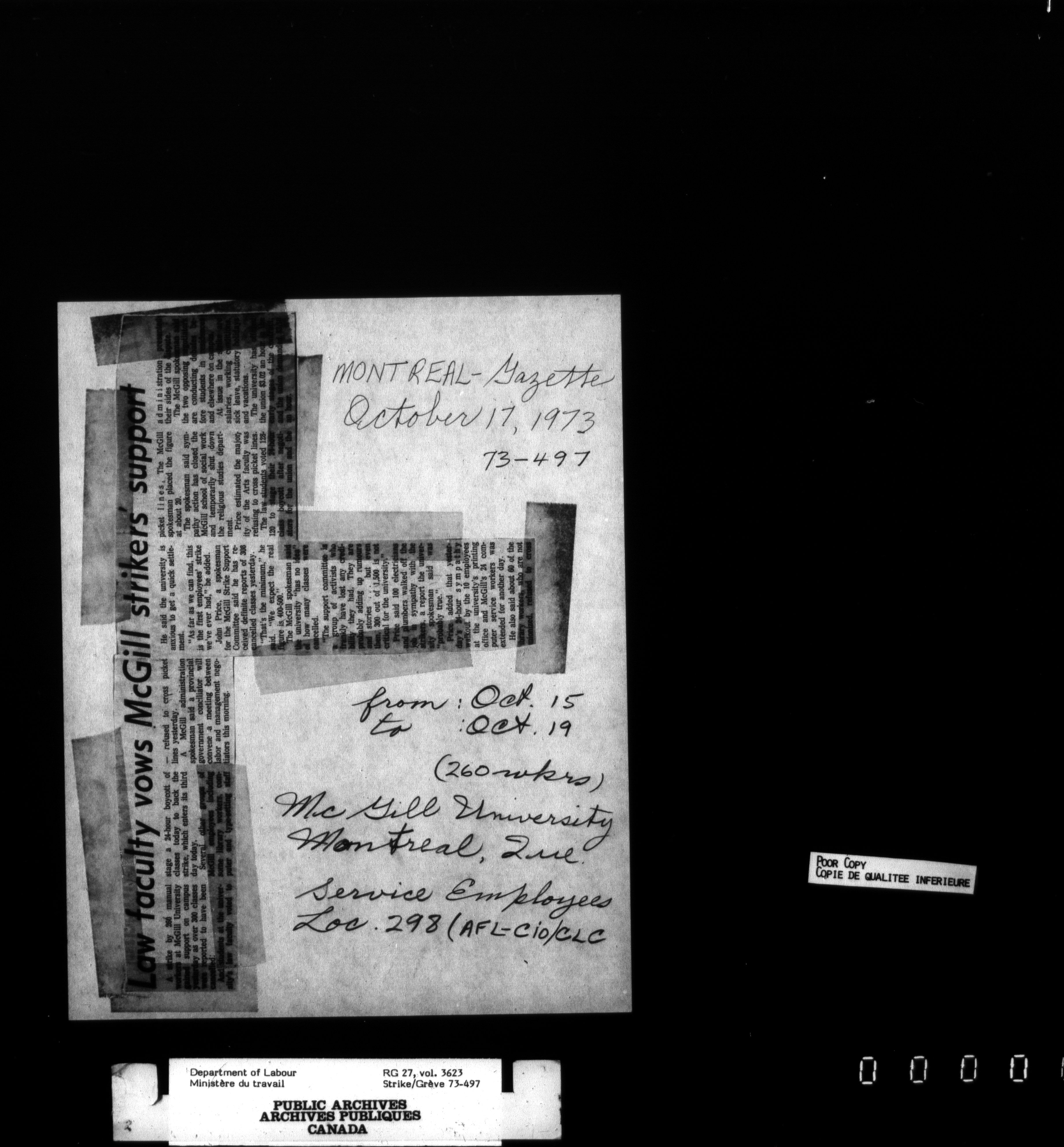 Department of Labour, Economics and Research Branch : Strikes and lockout files - 3459
