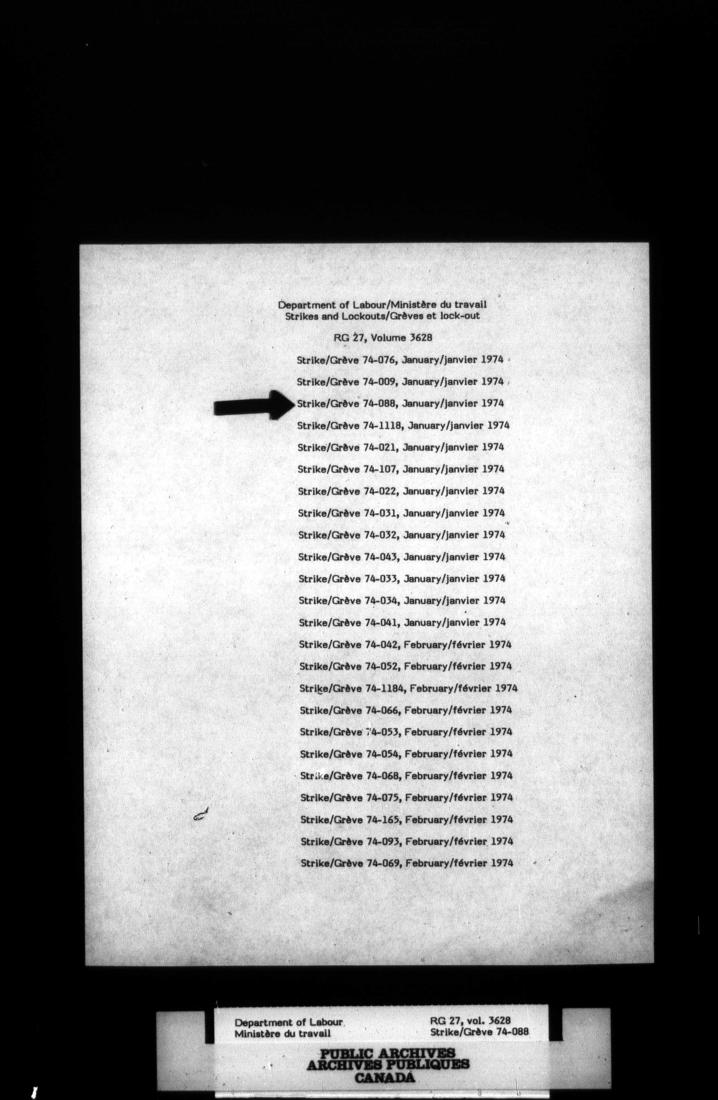 Department of Labour, Economics and Research Branch : Strikes and lockout files : T-3462