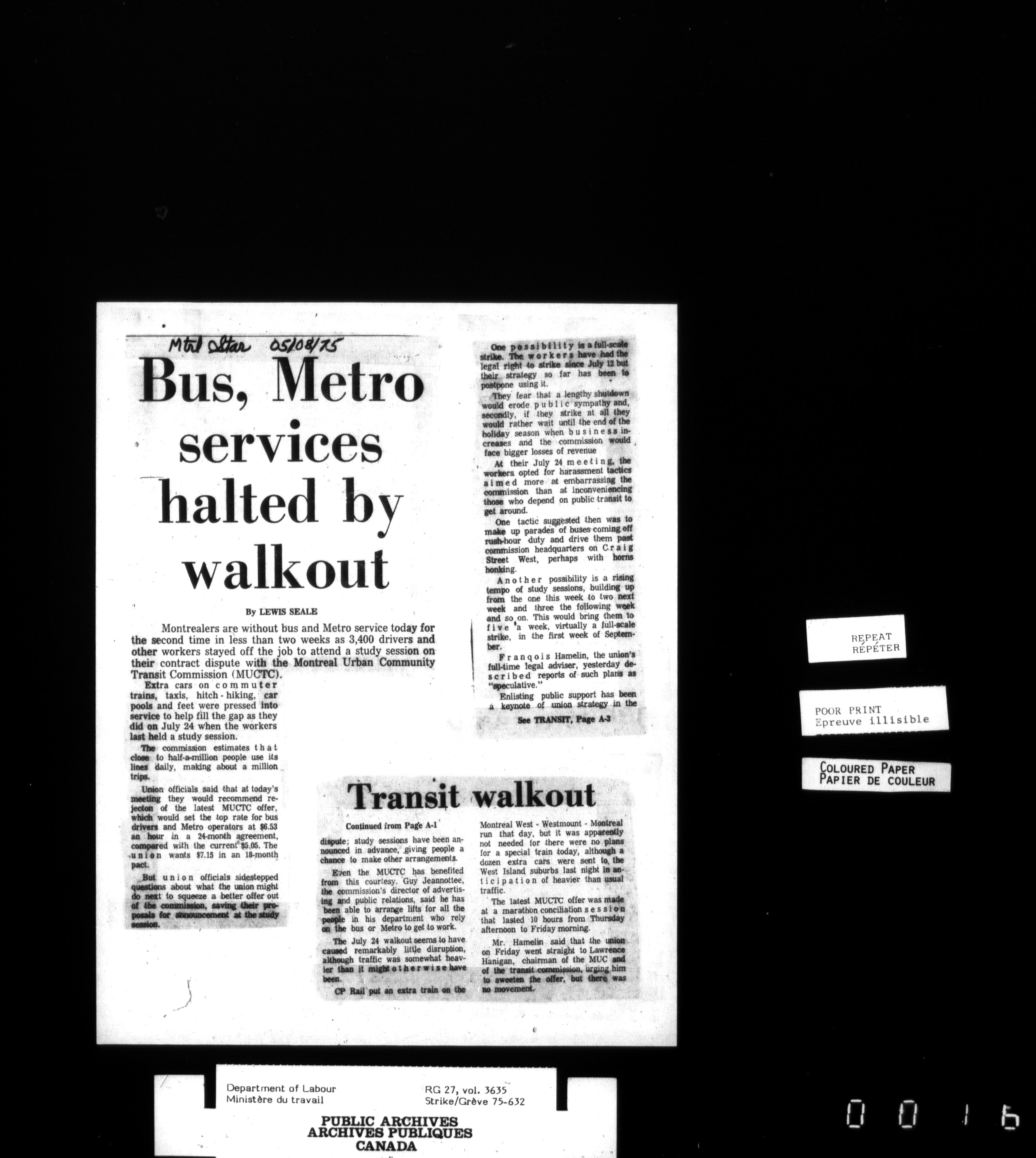 Department of Labour, Economics and Research Branch : Strikes and lockout files - 3465