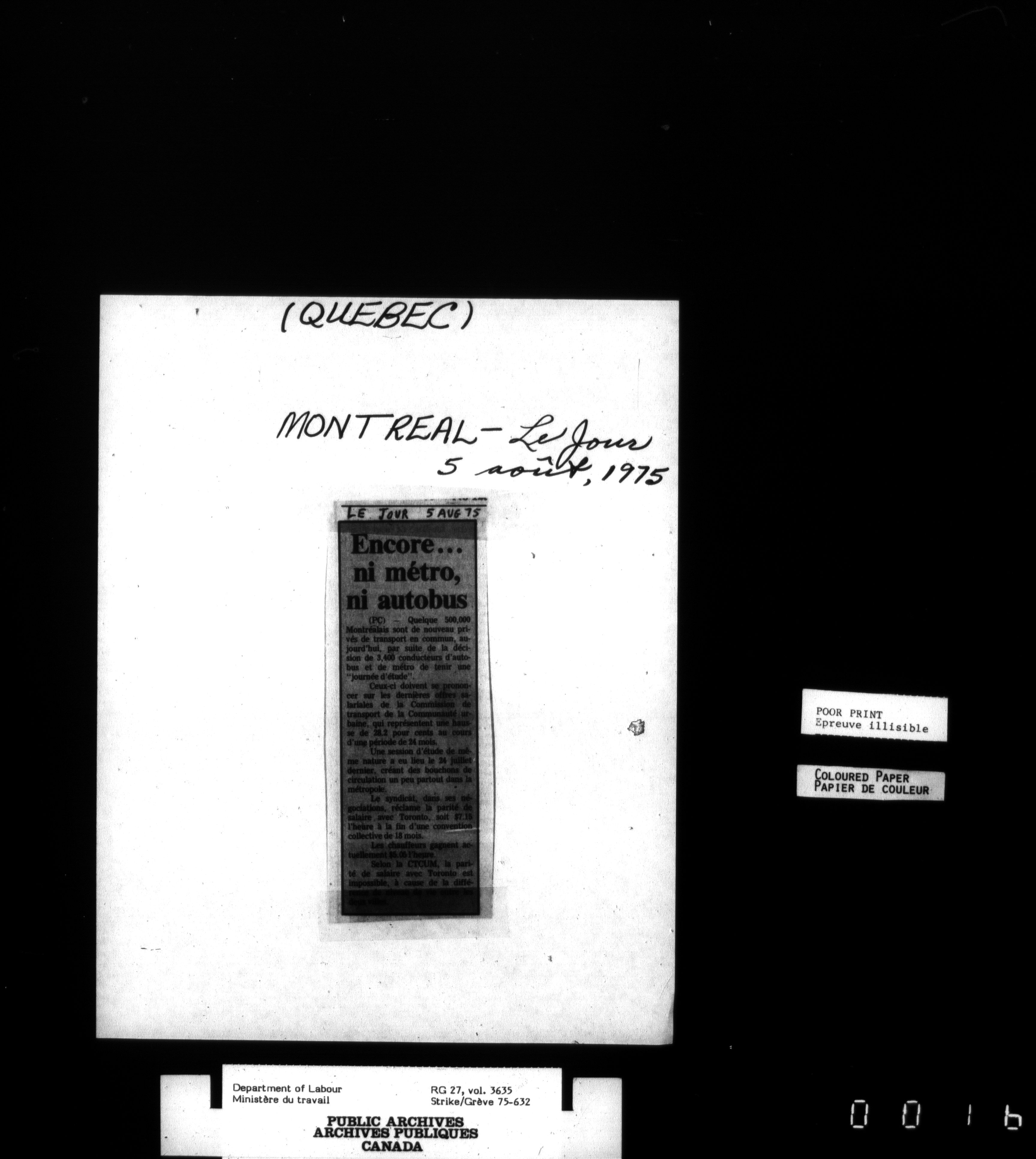 Department of Labour, Economics and Research Branch : Strikes and lockout files - 3465