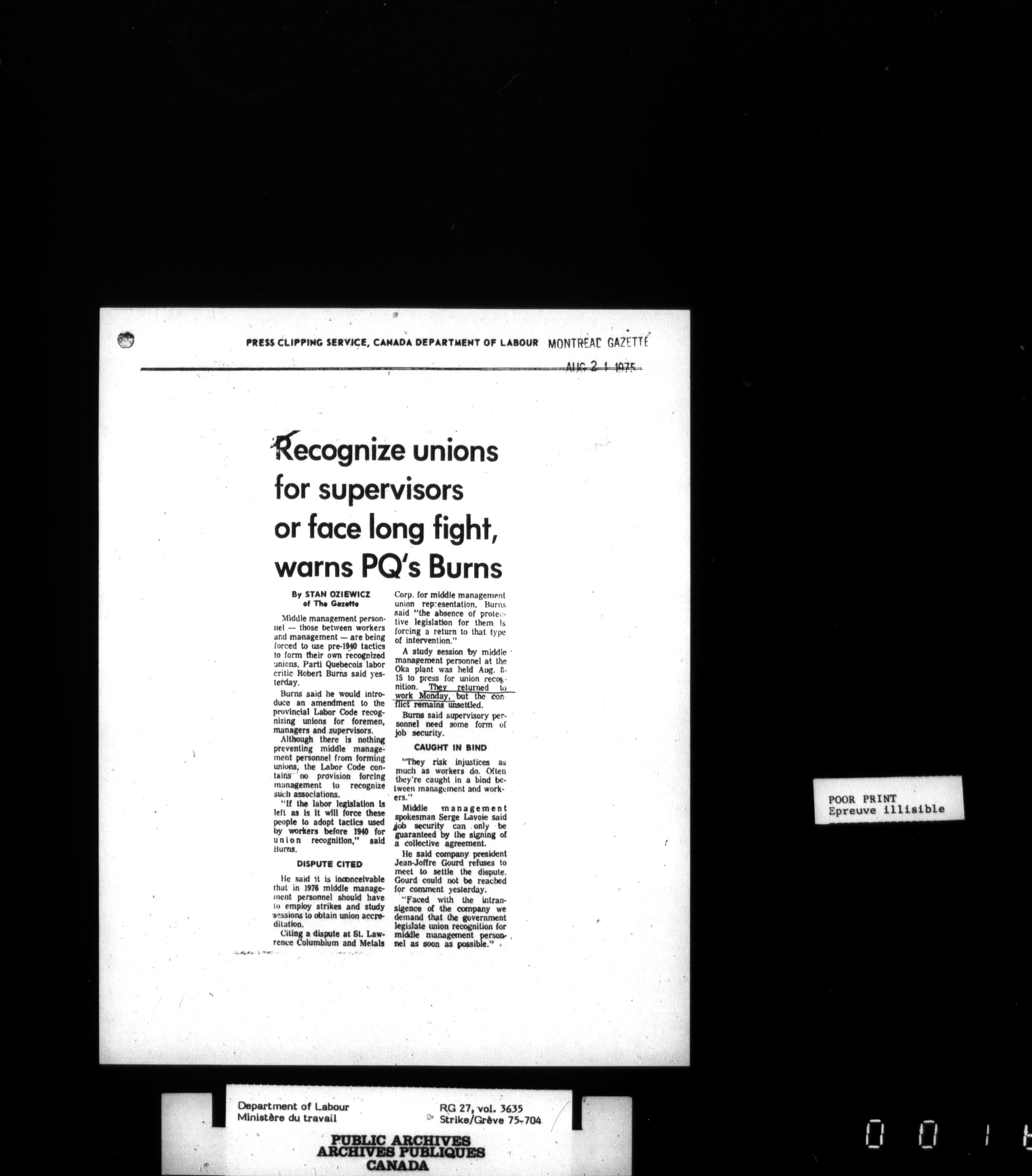 Department of Labour, Economics and Research Branch : Strikes and lockout files - 3465