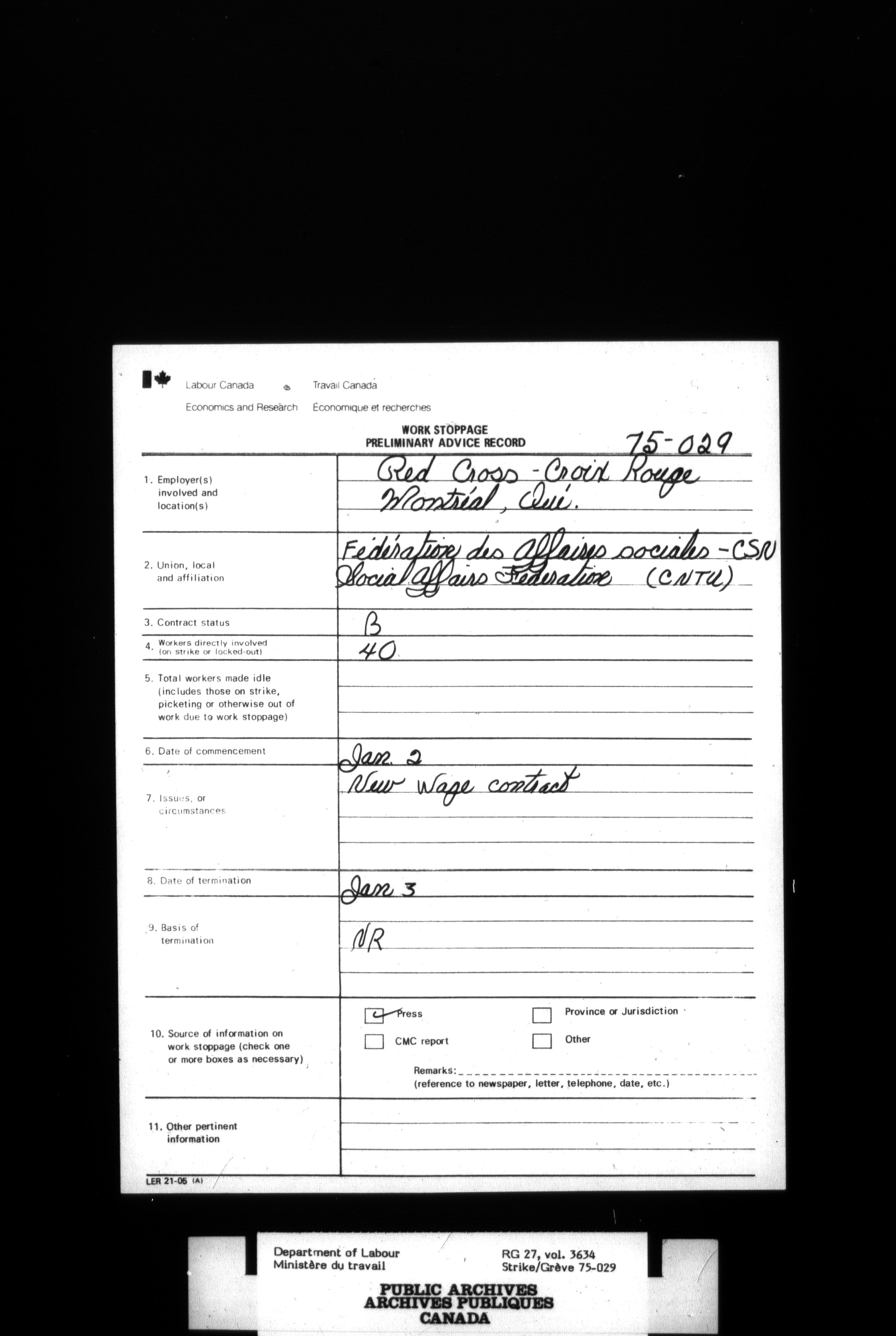 Department of Labour, Economics and Research Branch : Strikes and lockout files - 3465