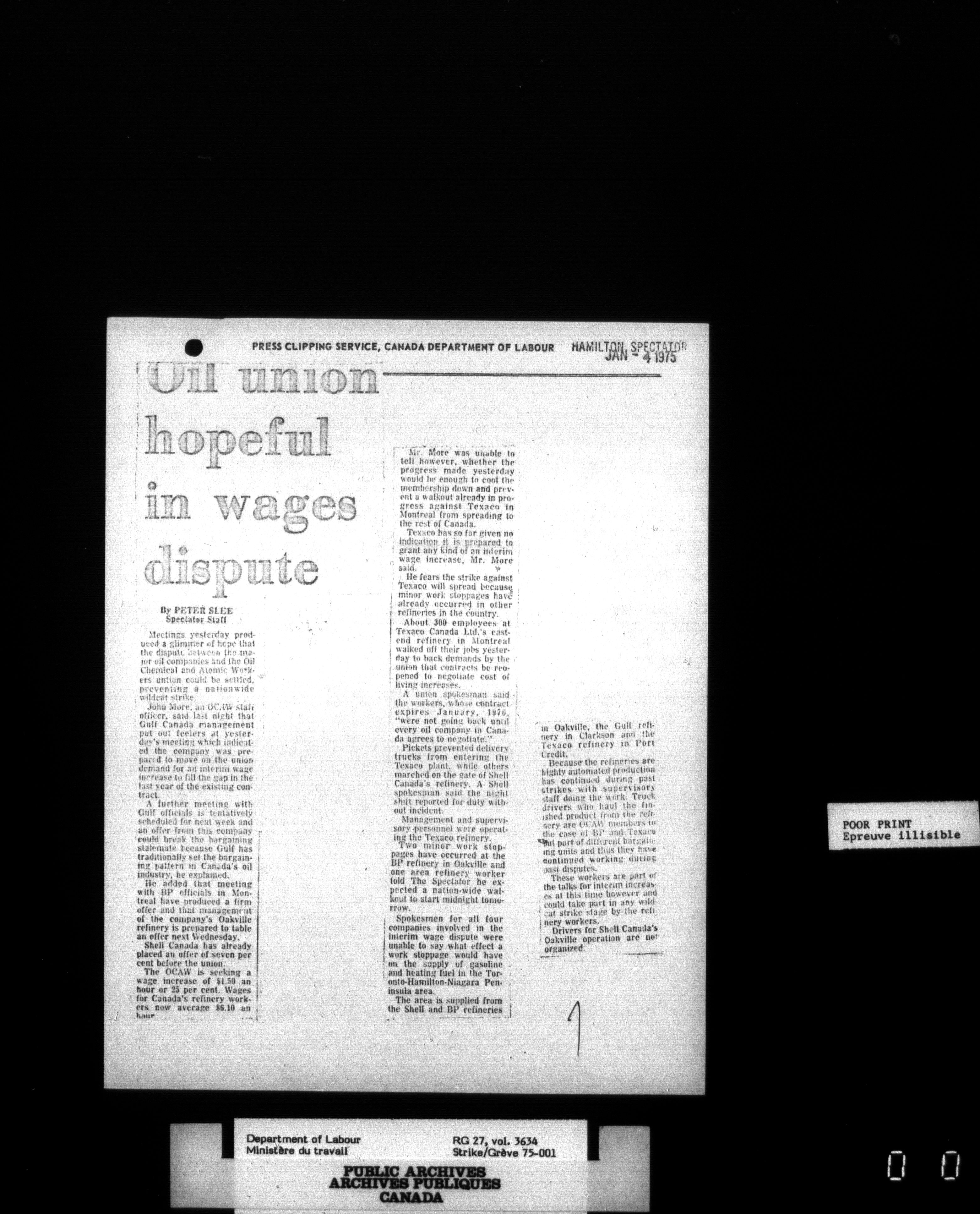 Department of Labour, Economics and Research Branch : Strikes and lockout files - 3465