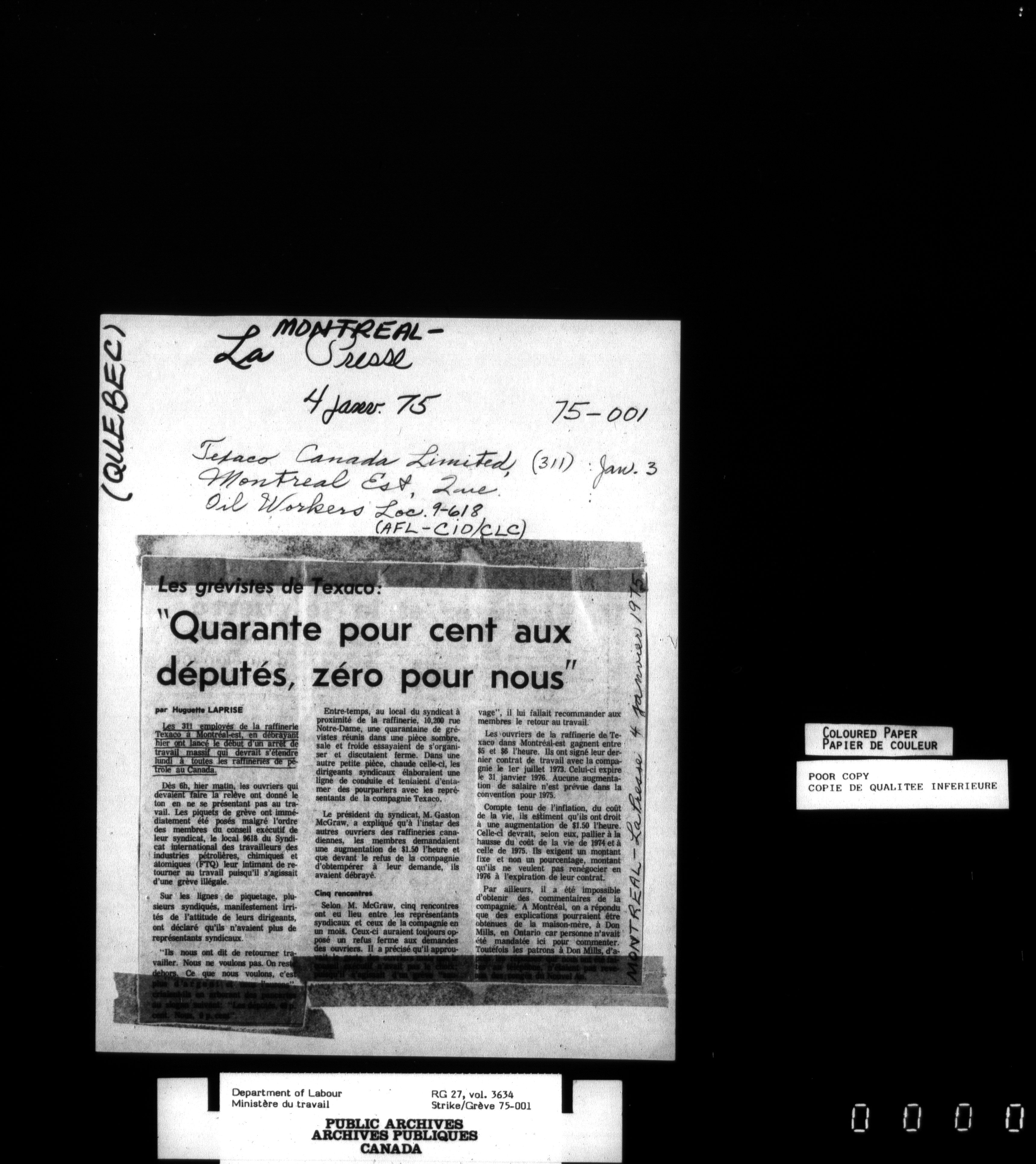Department of Labour, Economics and Research Branch : Strikes and lockout files - 3465