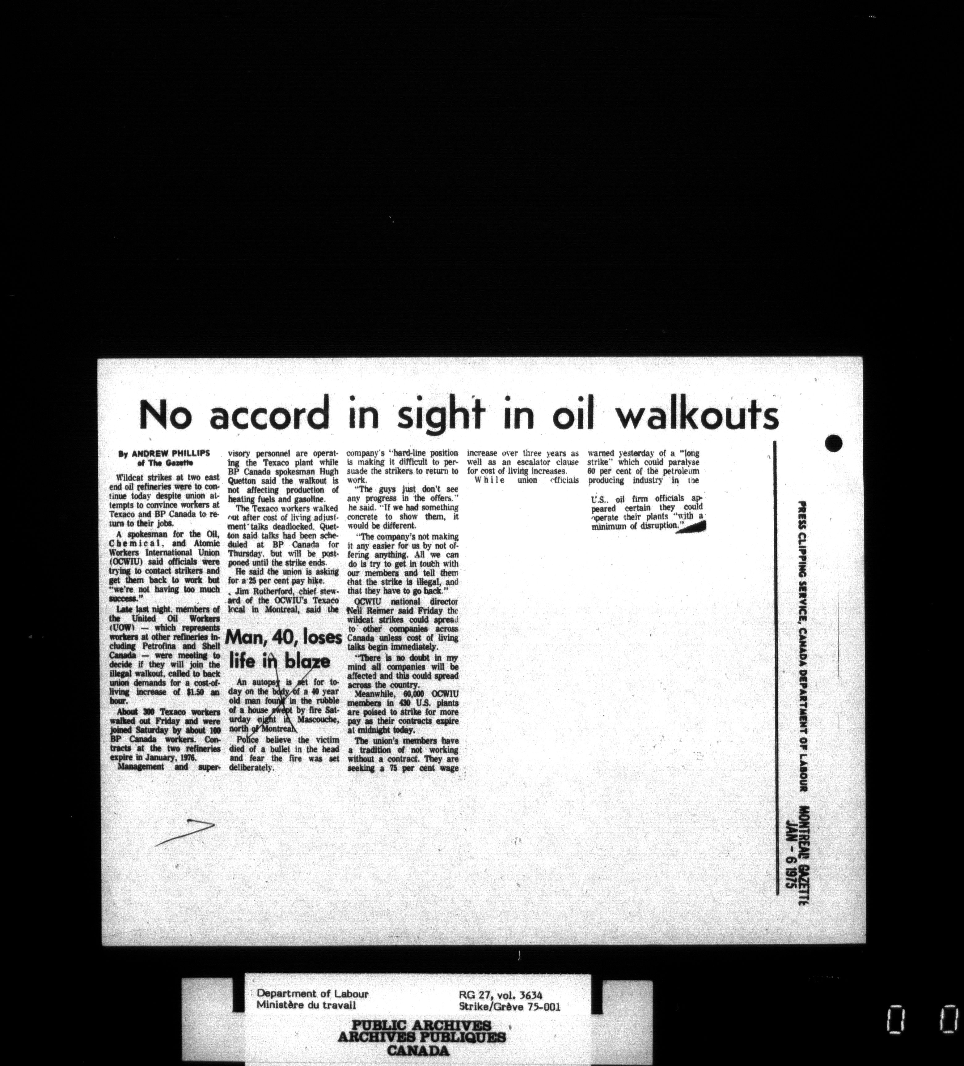 Department of Labour, Economics and Research Branch : Strikes and lockout files - 3465