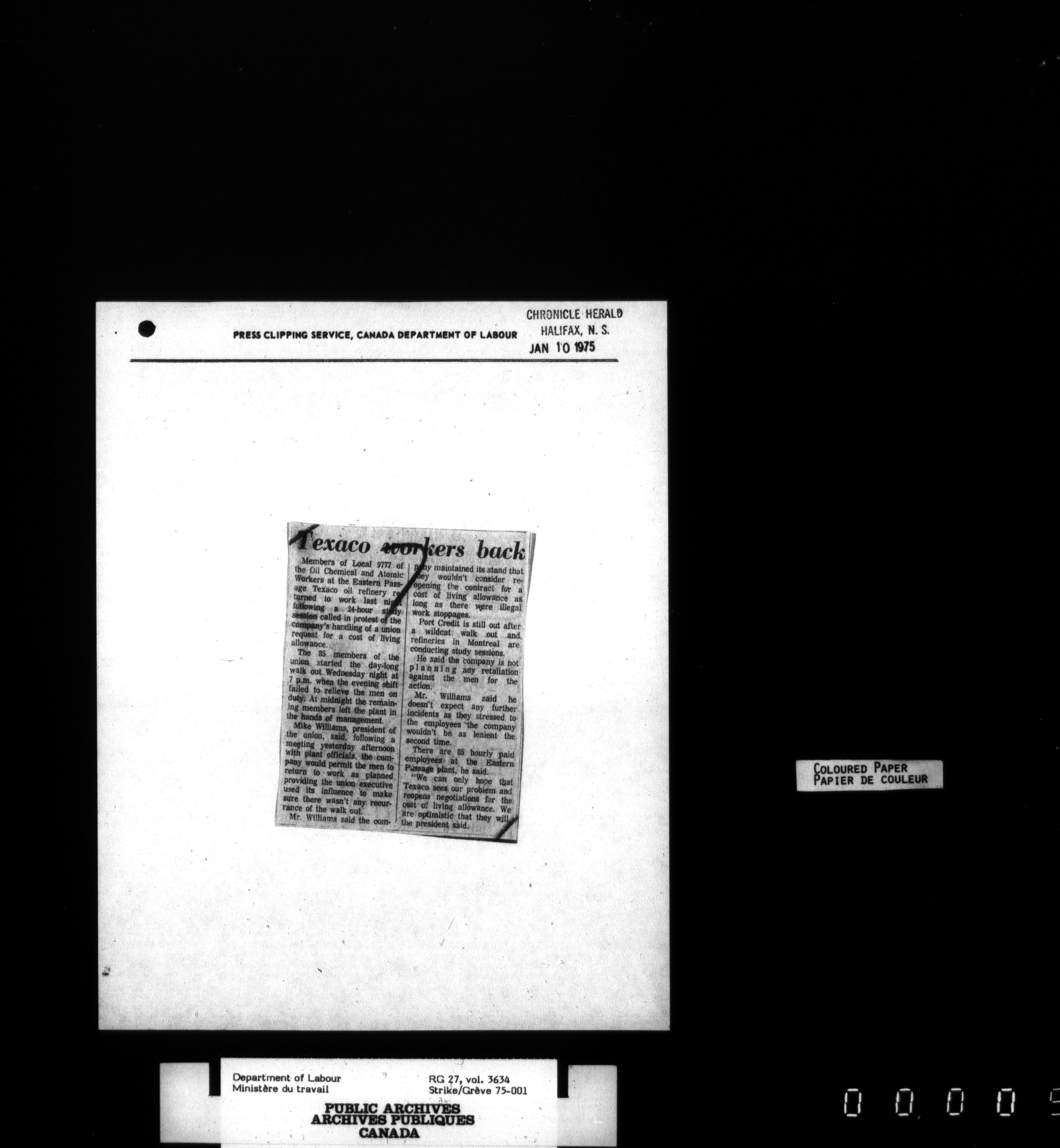 Department of Labour, Economics and Research Branch : Strikes and lockout files - 3465