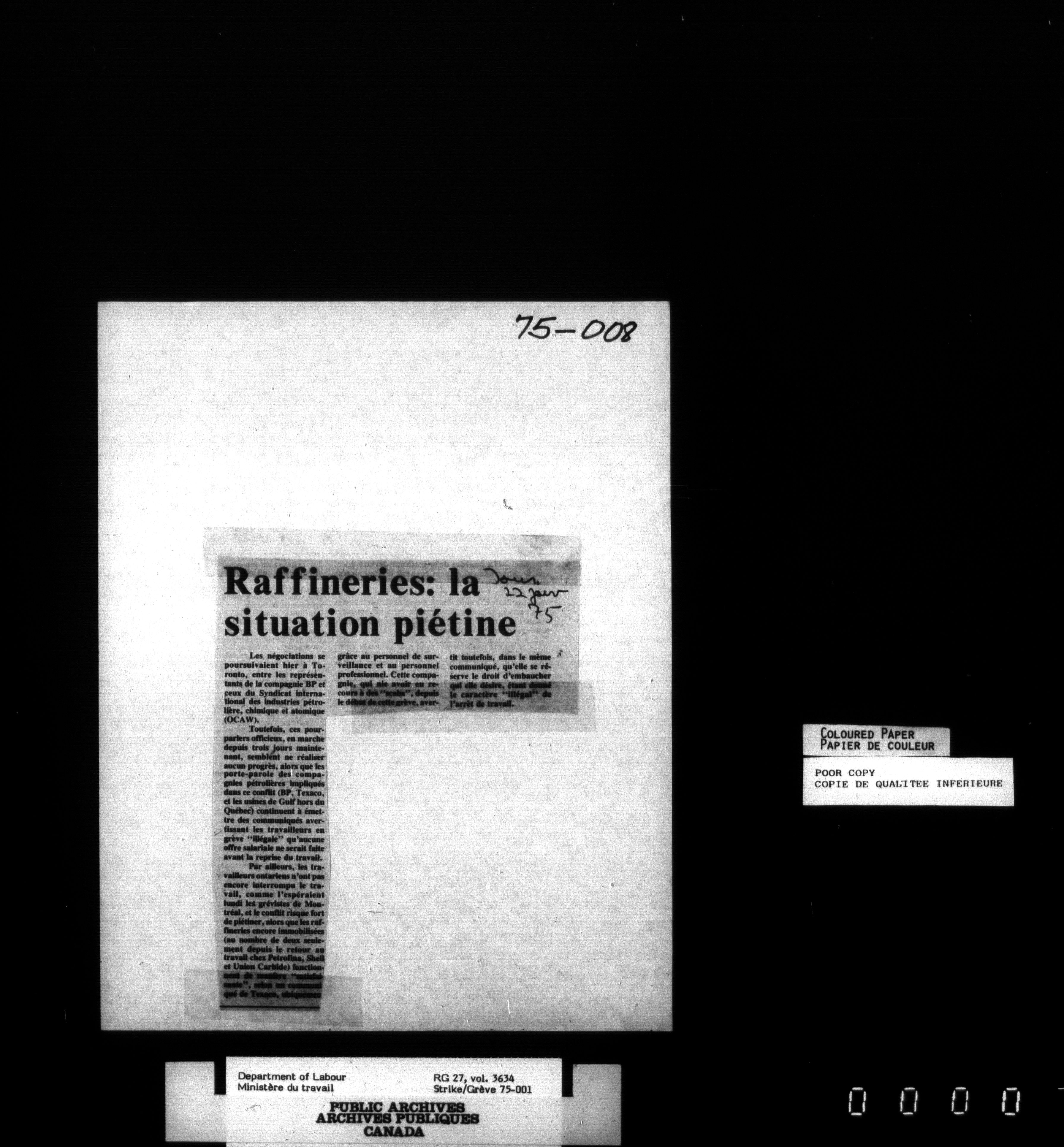 Department of Labour, Economics and Research Branch : Strikes and lockout files - 3465