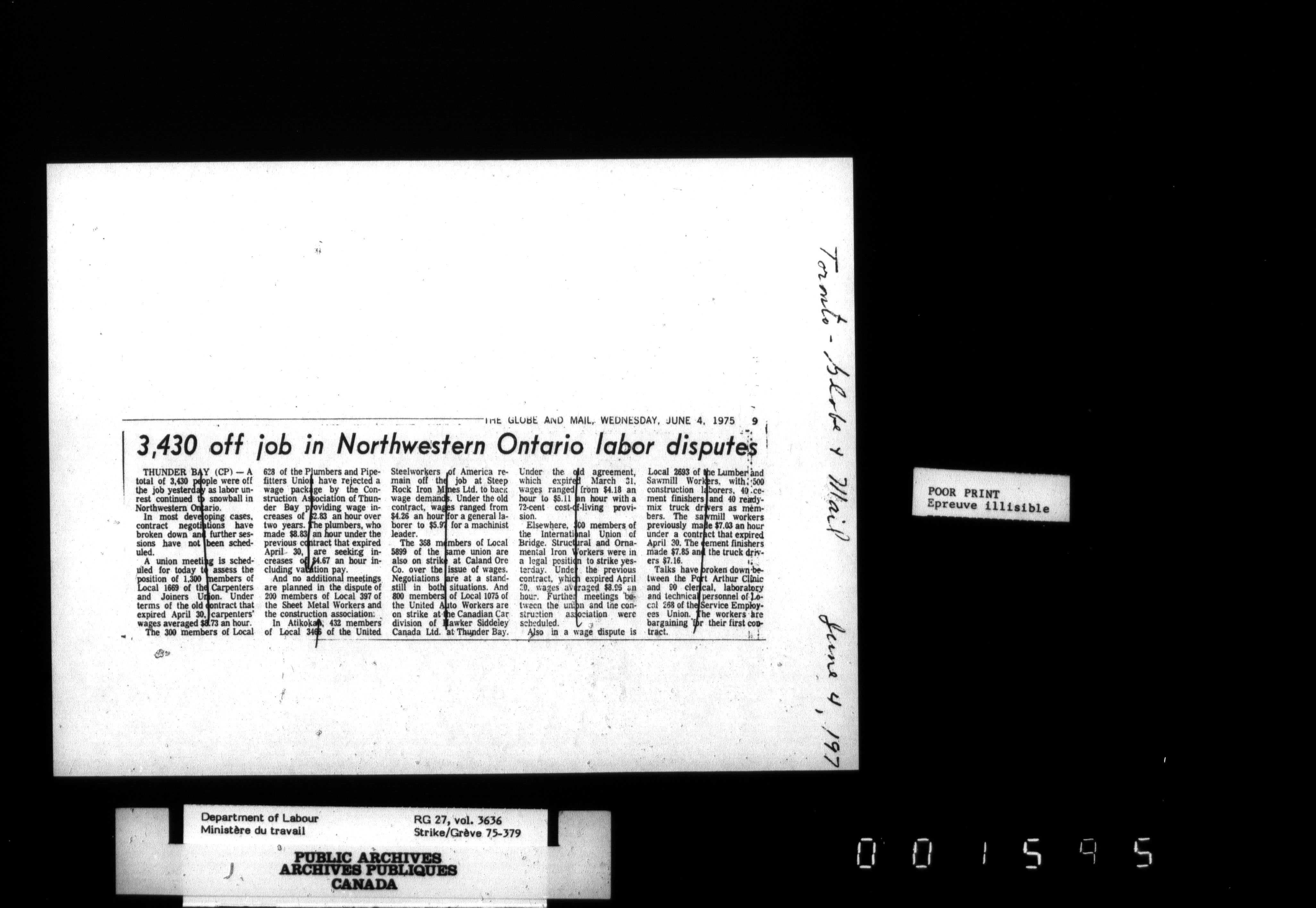 Department of Labour, Economics and Research Branch : Strikes and lockout files - 3466