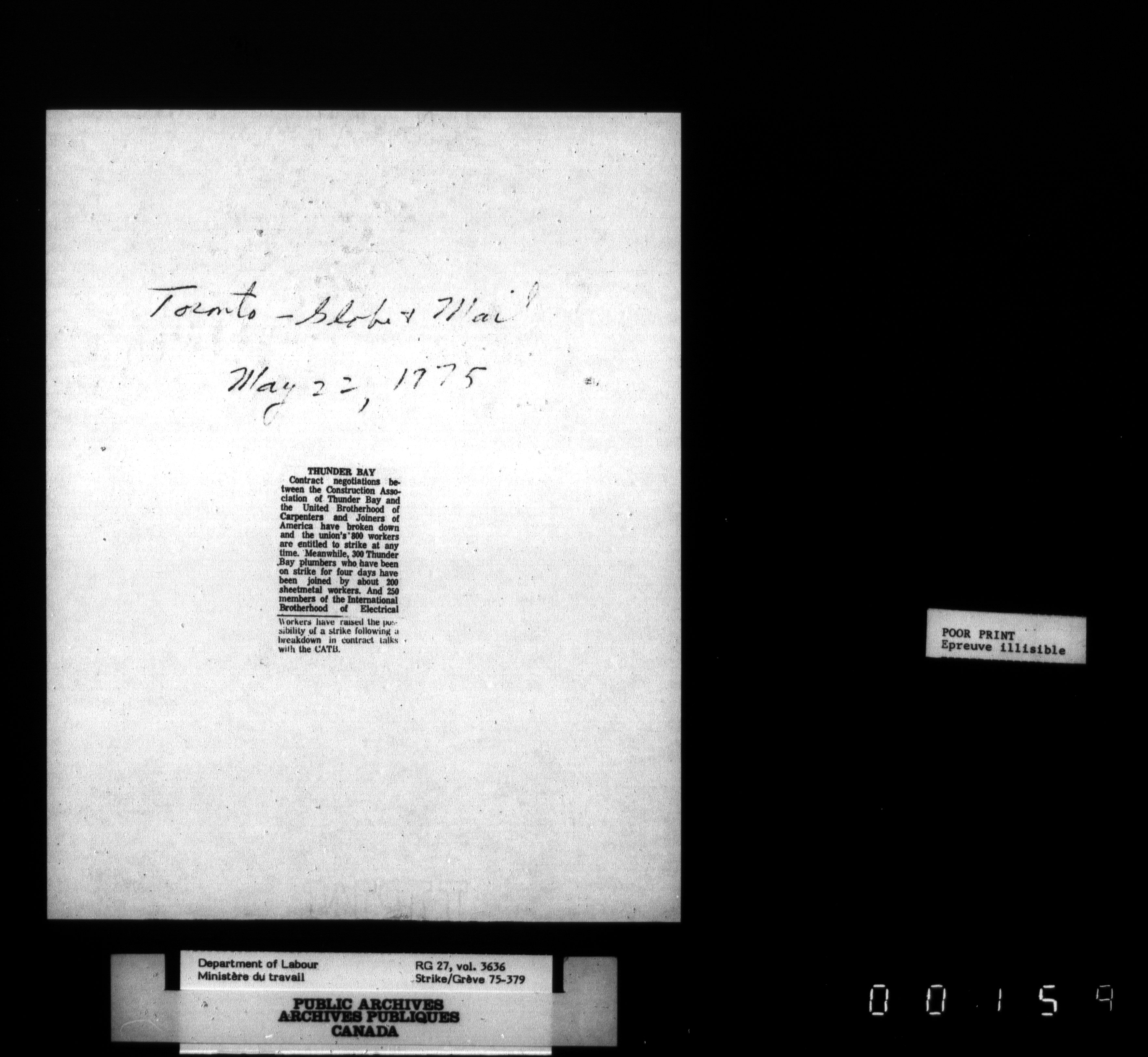 Department of Labour, Economics and Research Branch : Strikes and lockout files : T-3466