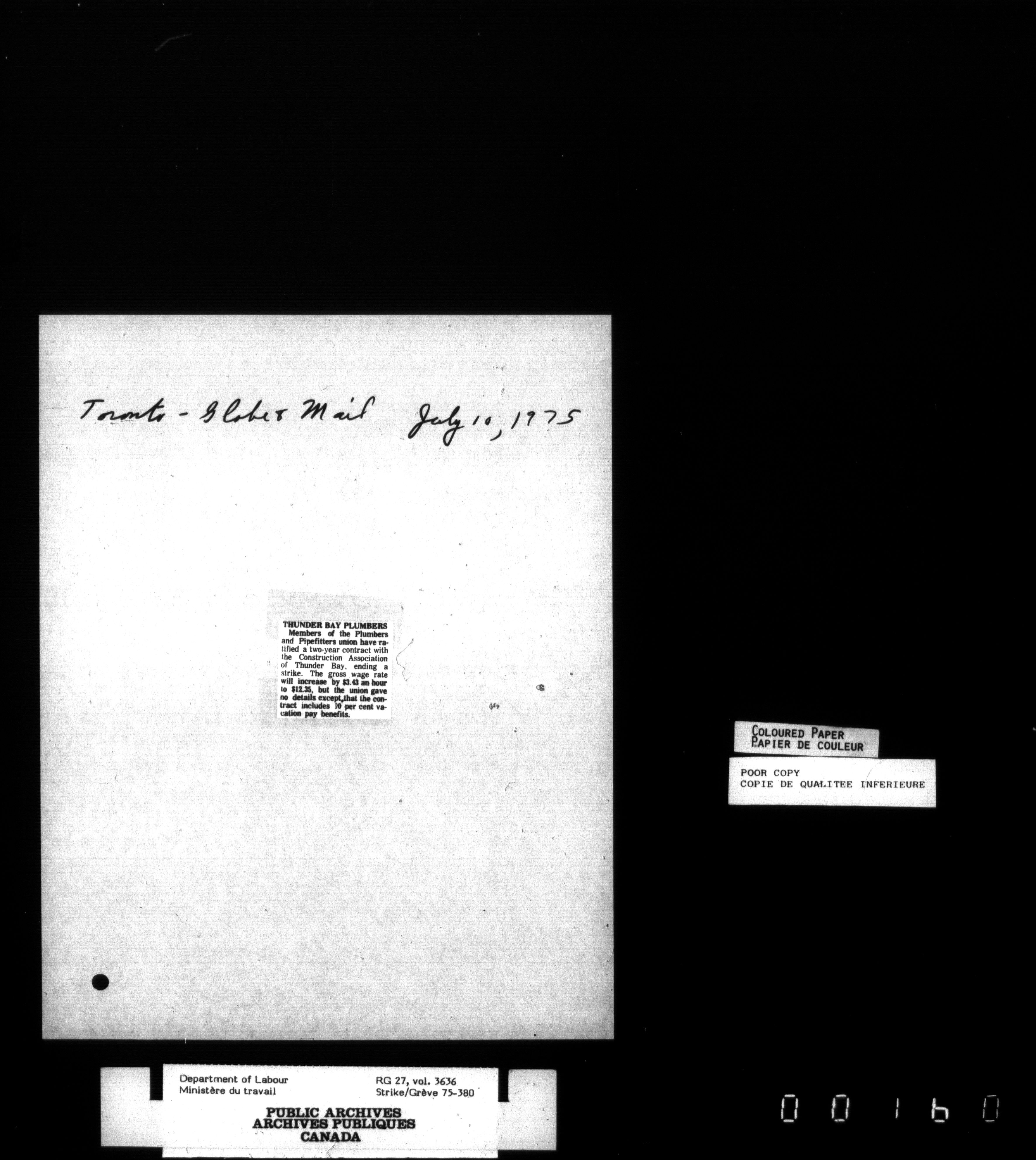 Department of Labour, Economics and Research Branch : Strikes and lockout files - 3466