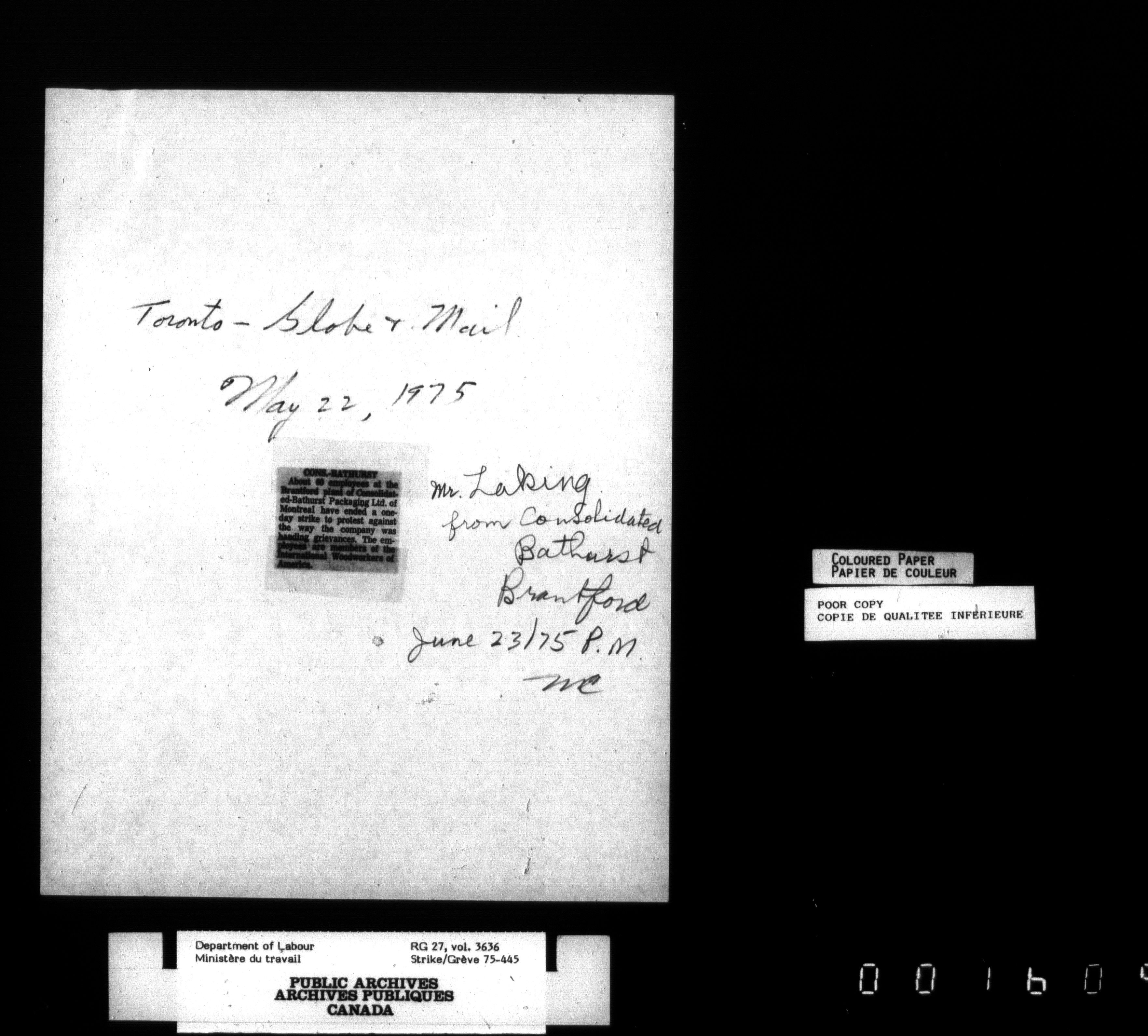 Department of Labour, Economics and Research Branch : Strikes and lockout files - 3466