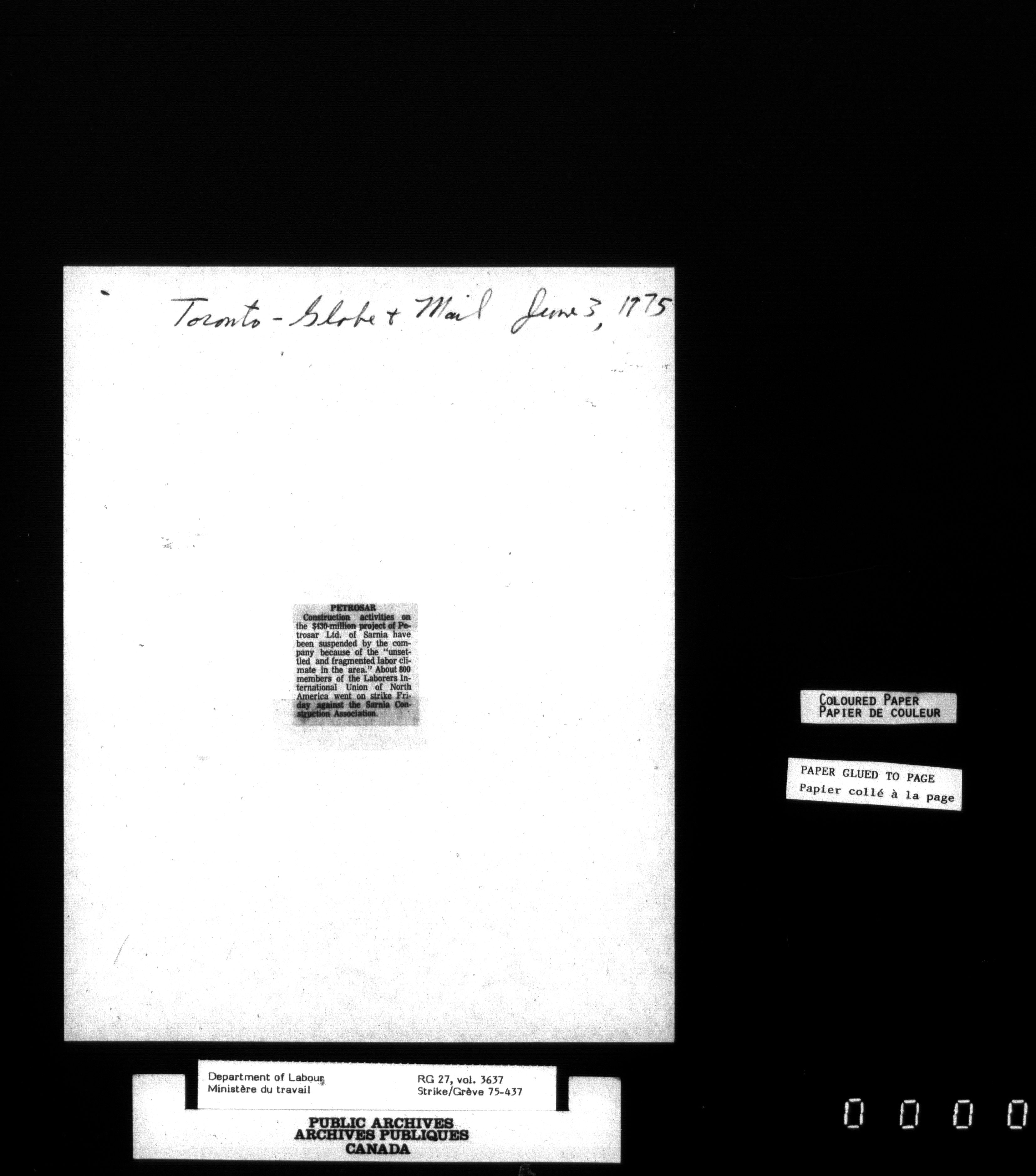 Department of Labour, Economics and Research Branch : Strikes and lockout files - 3467