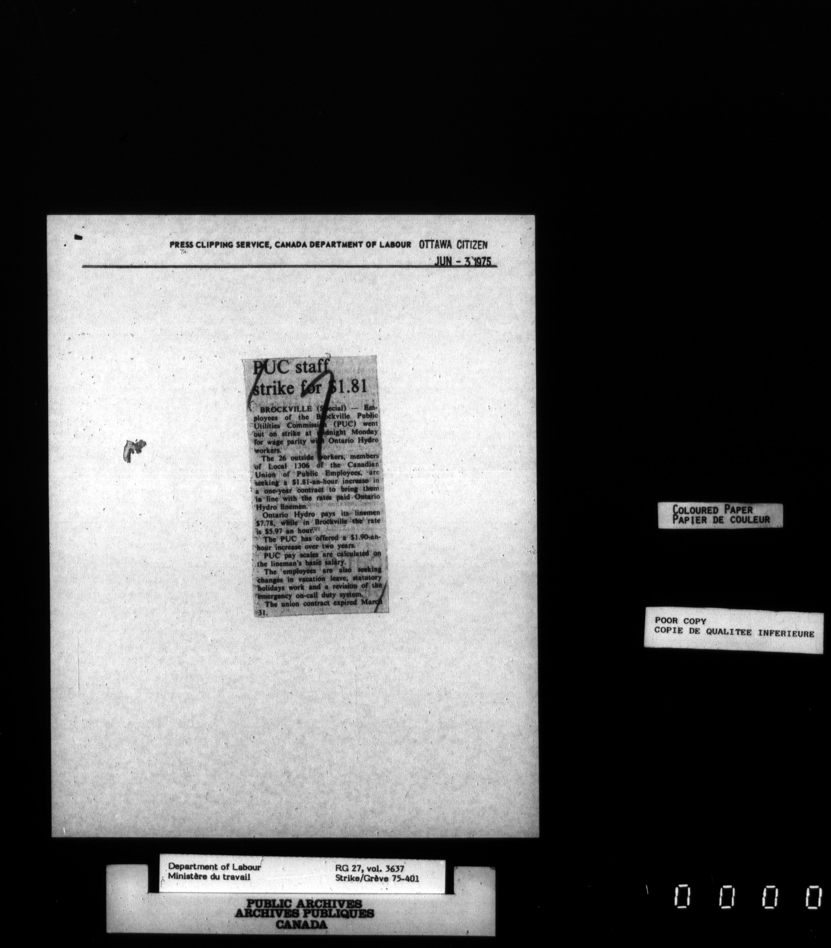 Department of Labour, Economics and Research Branch : Strikes and lockout files - 3467