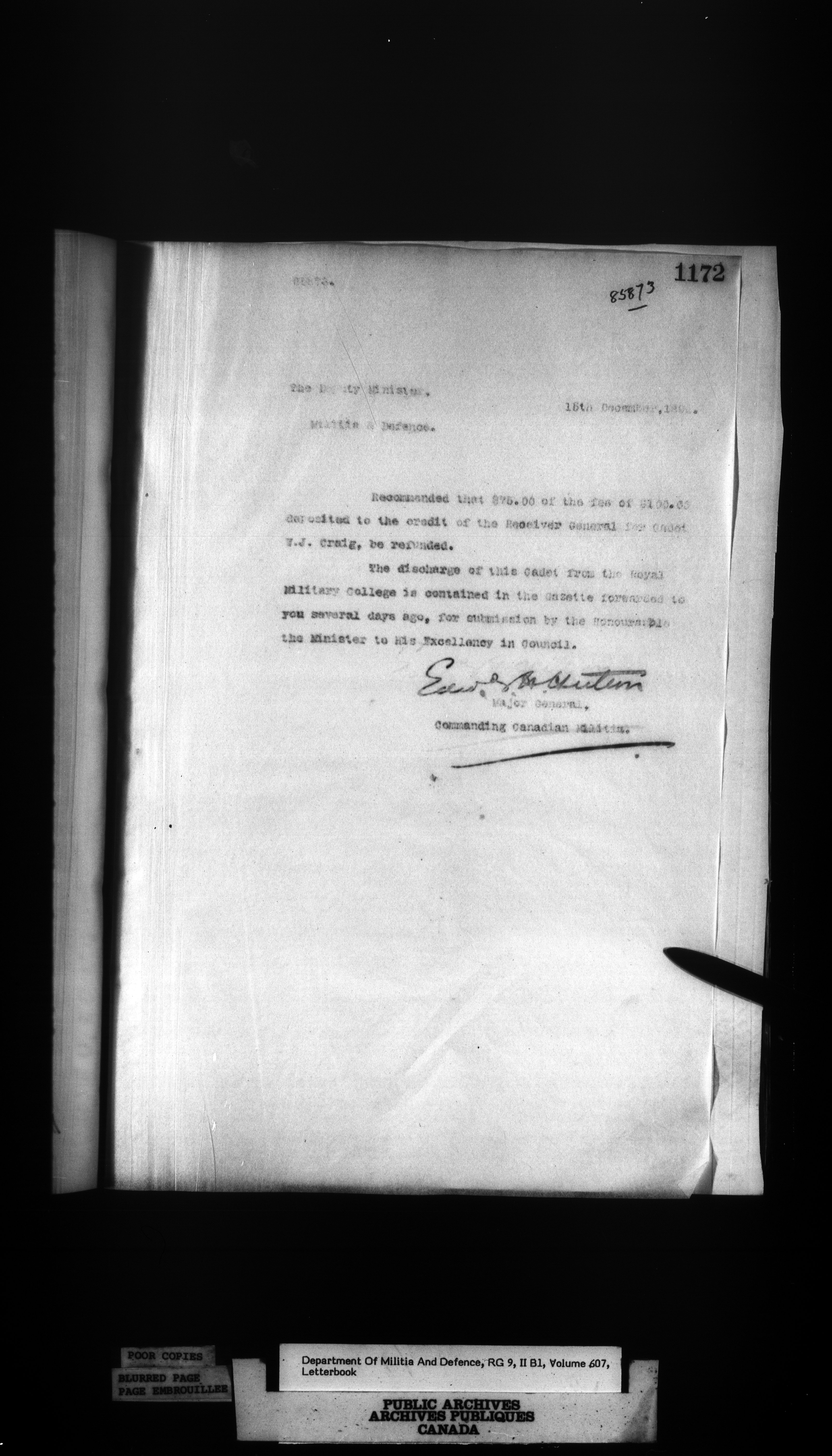Correspondence of the General Officer Commanding (GOC) of the Canadian Militia and his predecessor, the Adjutant General - 347