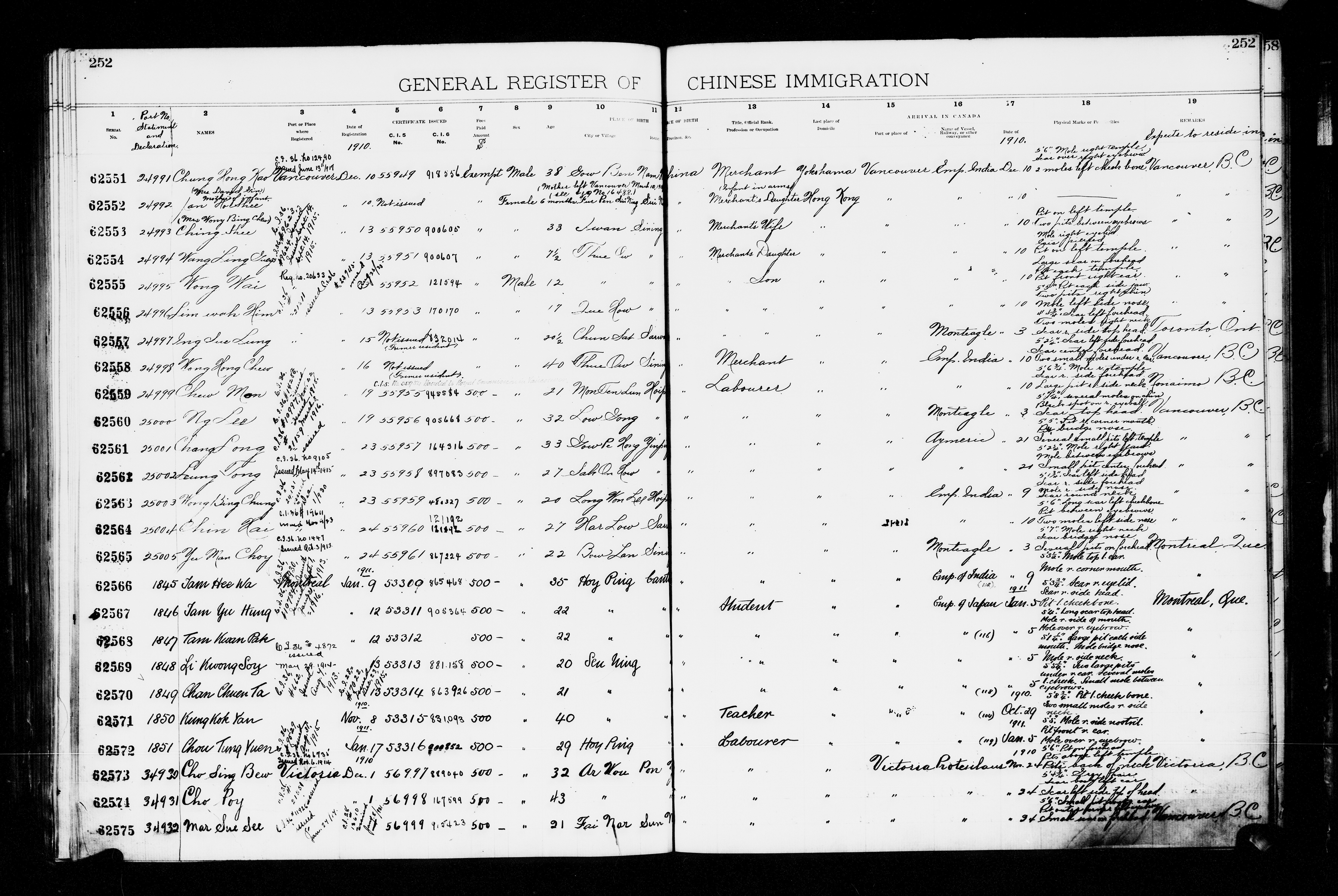 General registers of Chinese immigration: June 1903- Feb. 1911