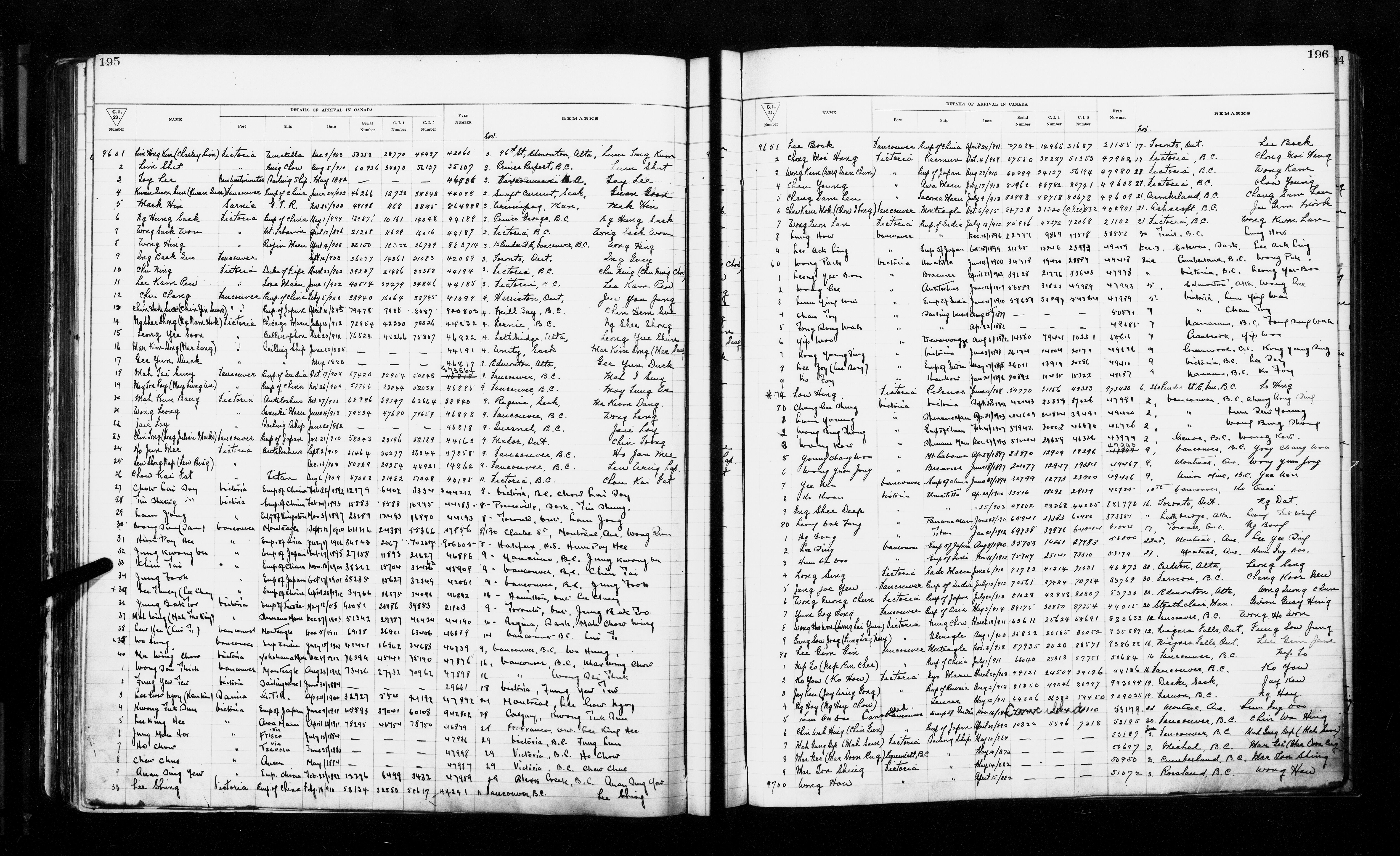 General registers of Chinese immigration: Mar. 1914- Sept. 1949 - T-3486