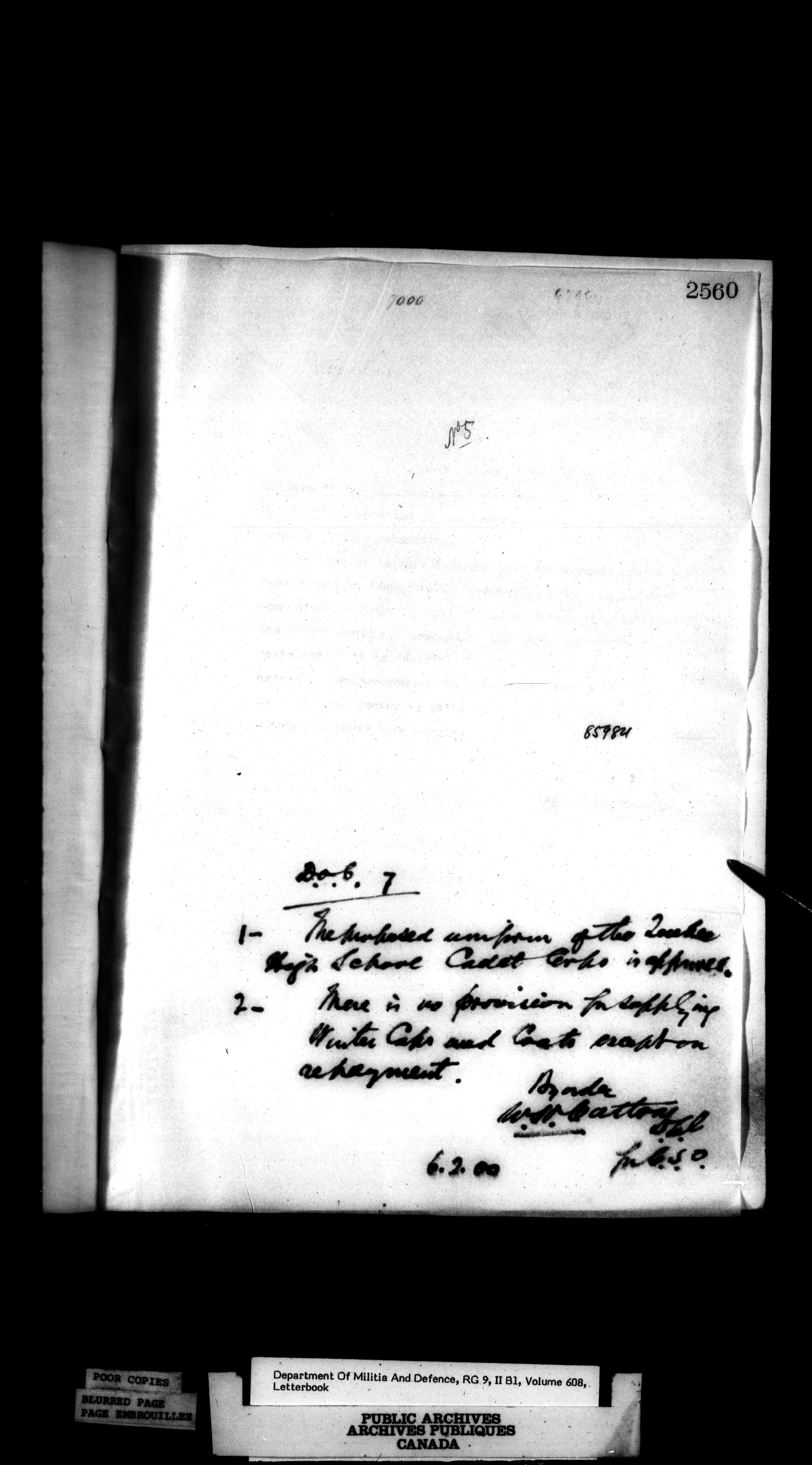 Correspondence of the General Officer Commanding (GOC) of the Canadian Militia and his predecessor, the Adjutant General - 349