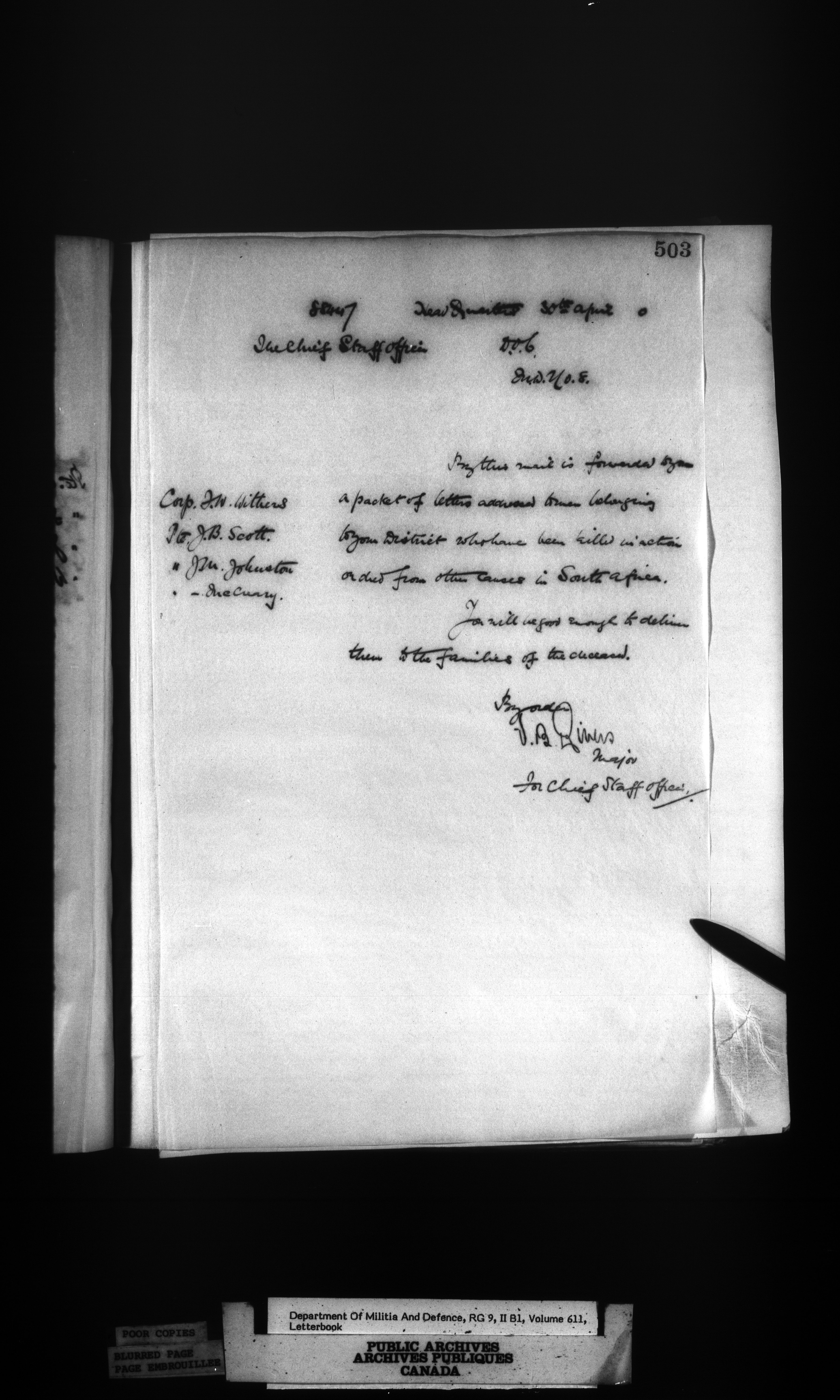 Correspondence of the General Officer Commanding (GOC) of the Canadian Militia and his predecessor, the Adjutant General - 350