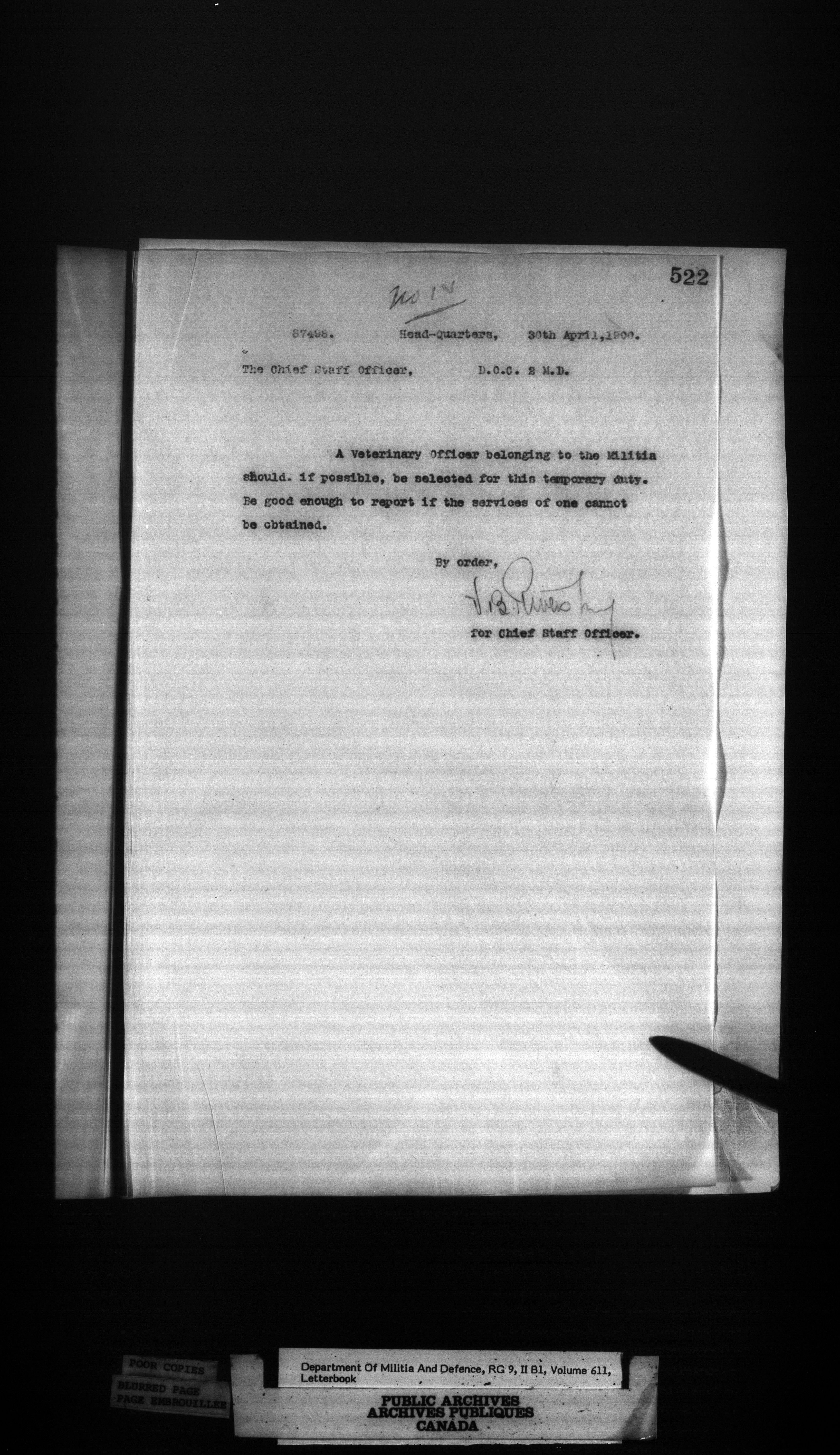 Correspondence of the General Officer Commanding (GOC) of the Canadian Militia and his predecessor, the Adjutant General - 350