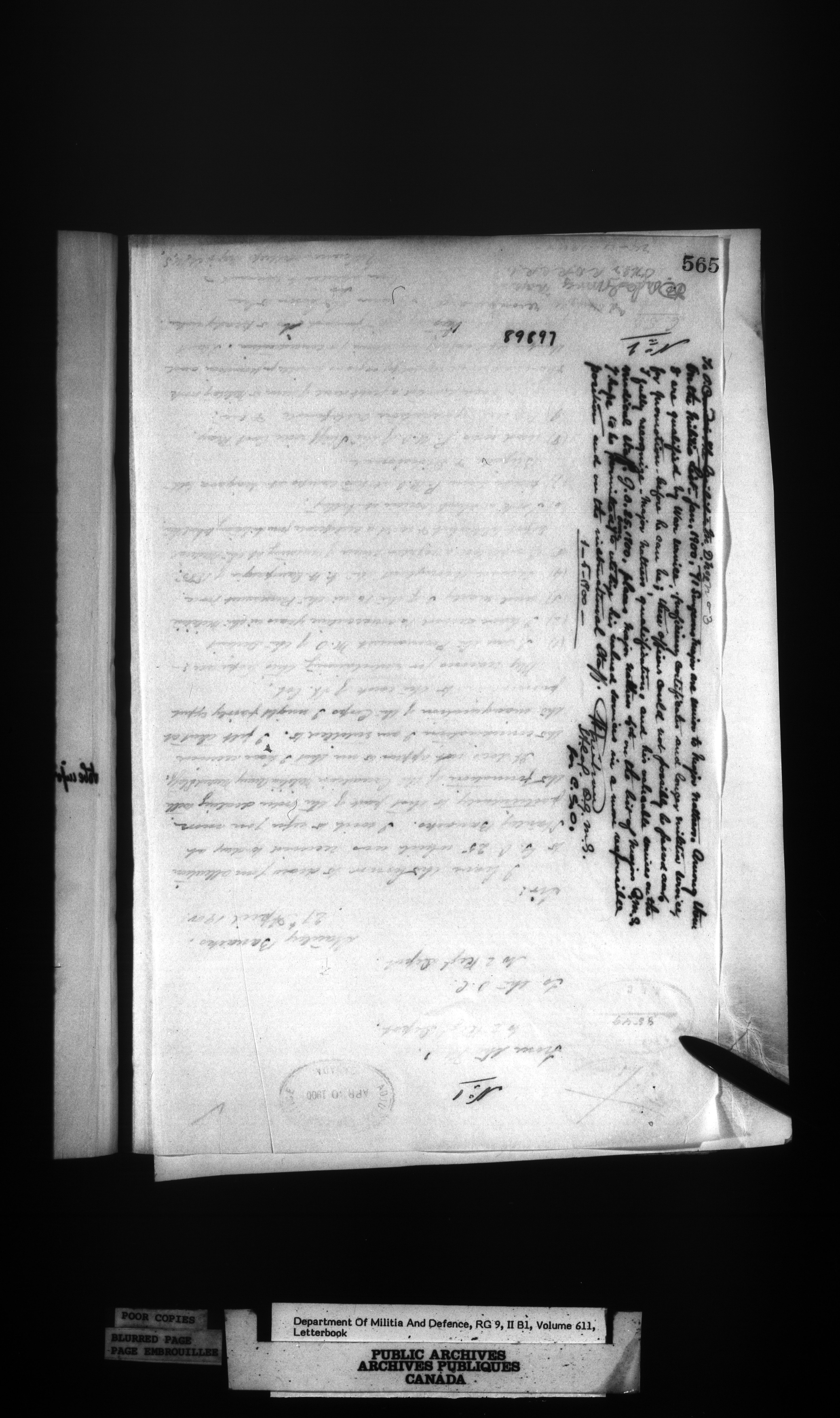 Correspondence of the General Officer Commanding (GOC) of the Canadian Militia and his predecessor, the Adjutant General - 350