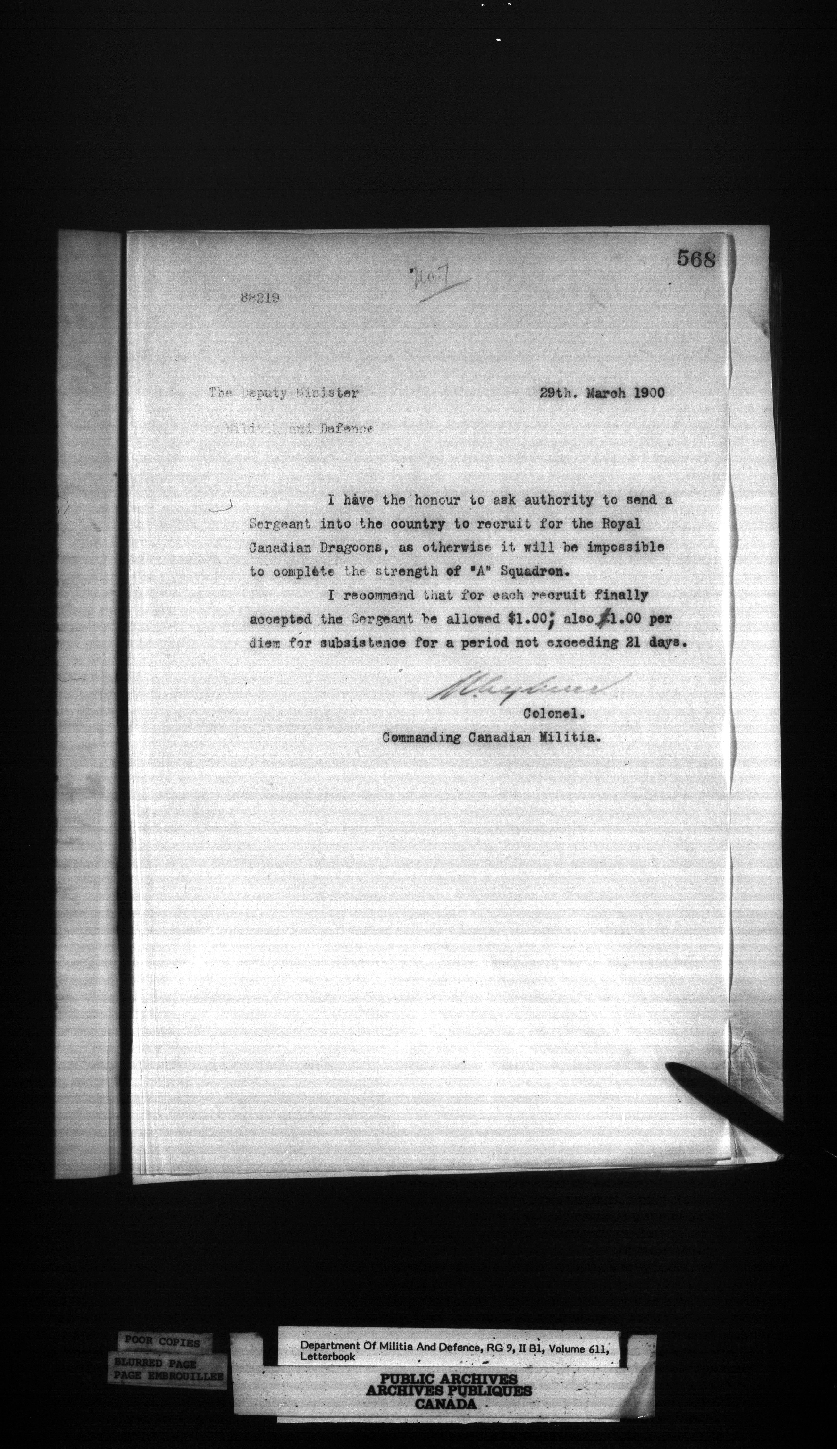 Correspondence of the General Officer Commanding (GOC) of the Canadian Militia and his predecessor, the Adjutant General - 350