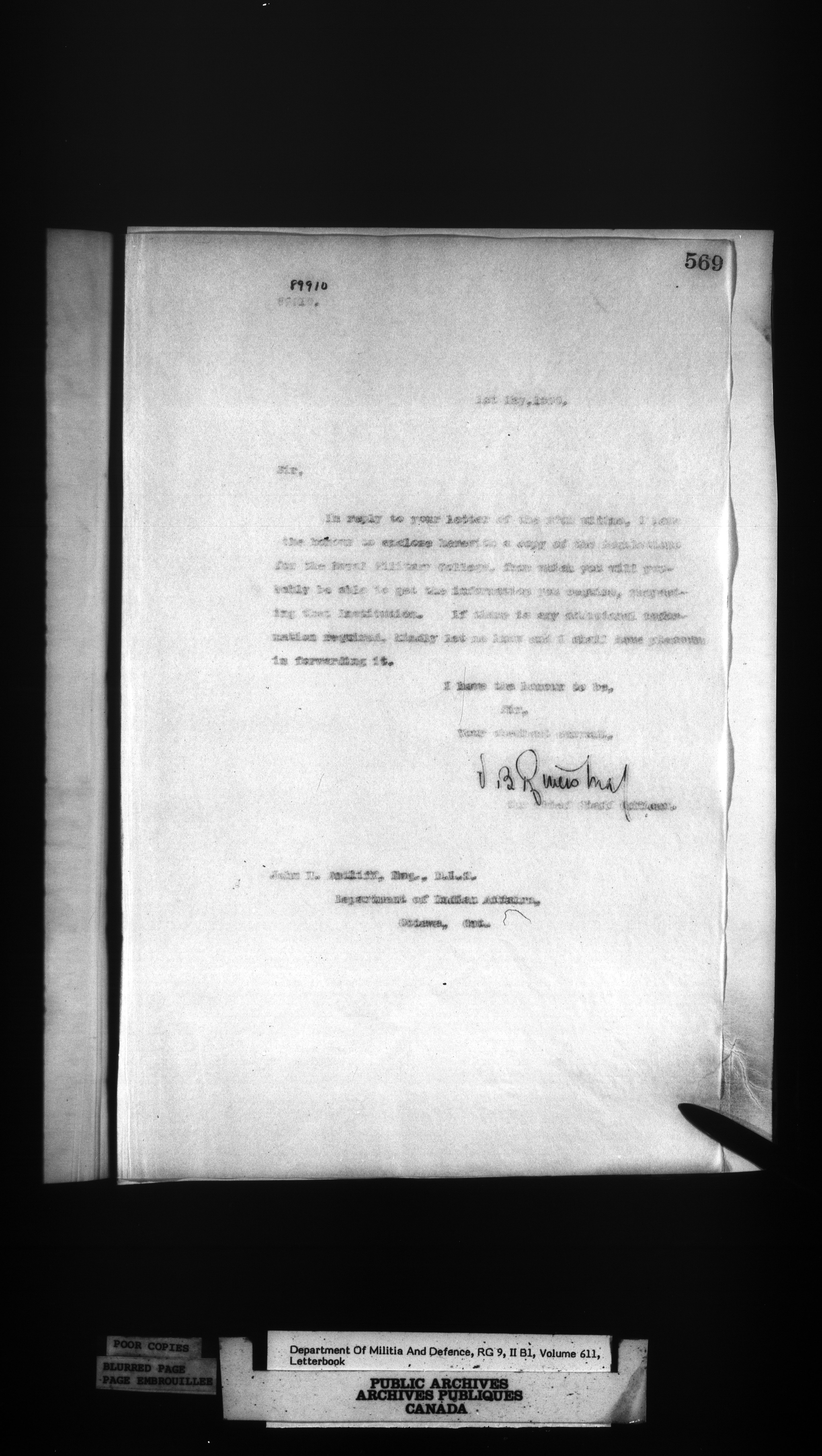 Correspondence of the General Officer Commanding (GOC) of the Canadian Militia and his predecessor, the Adjutant General - 350