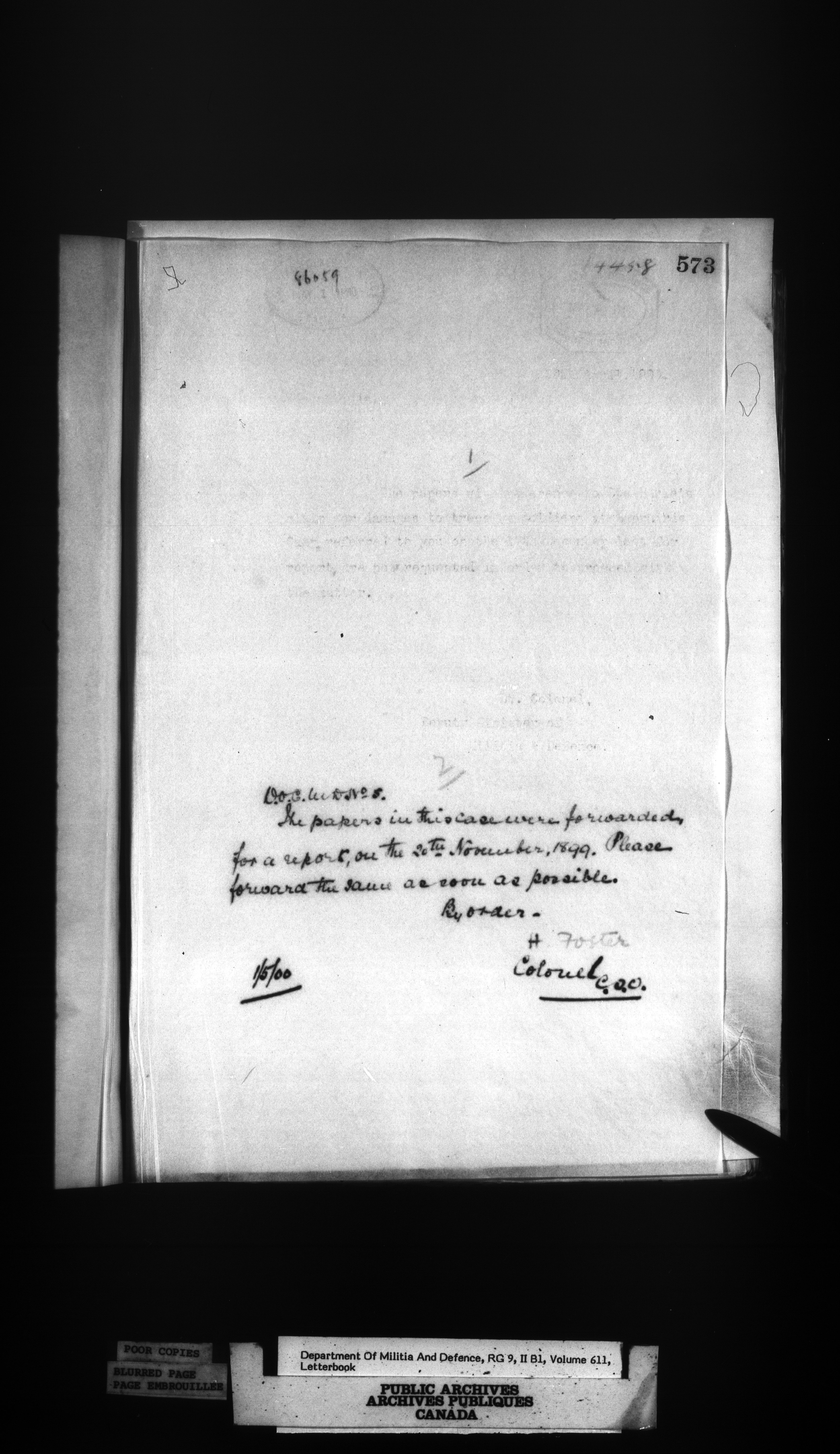 Correspondence of the General Officer Commanding (GOC) of the Canadian Militia and his predecessor, the Adjutant General - 350