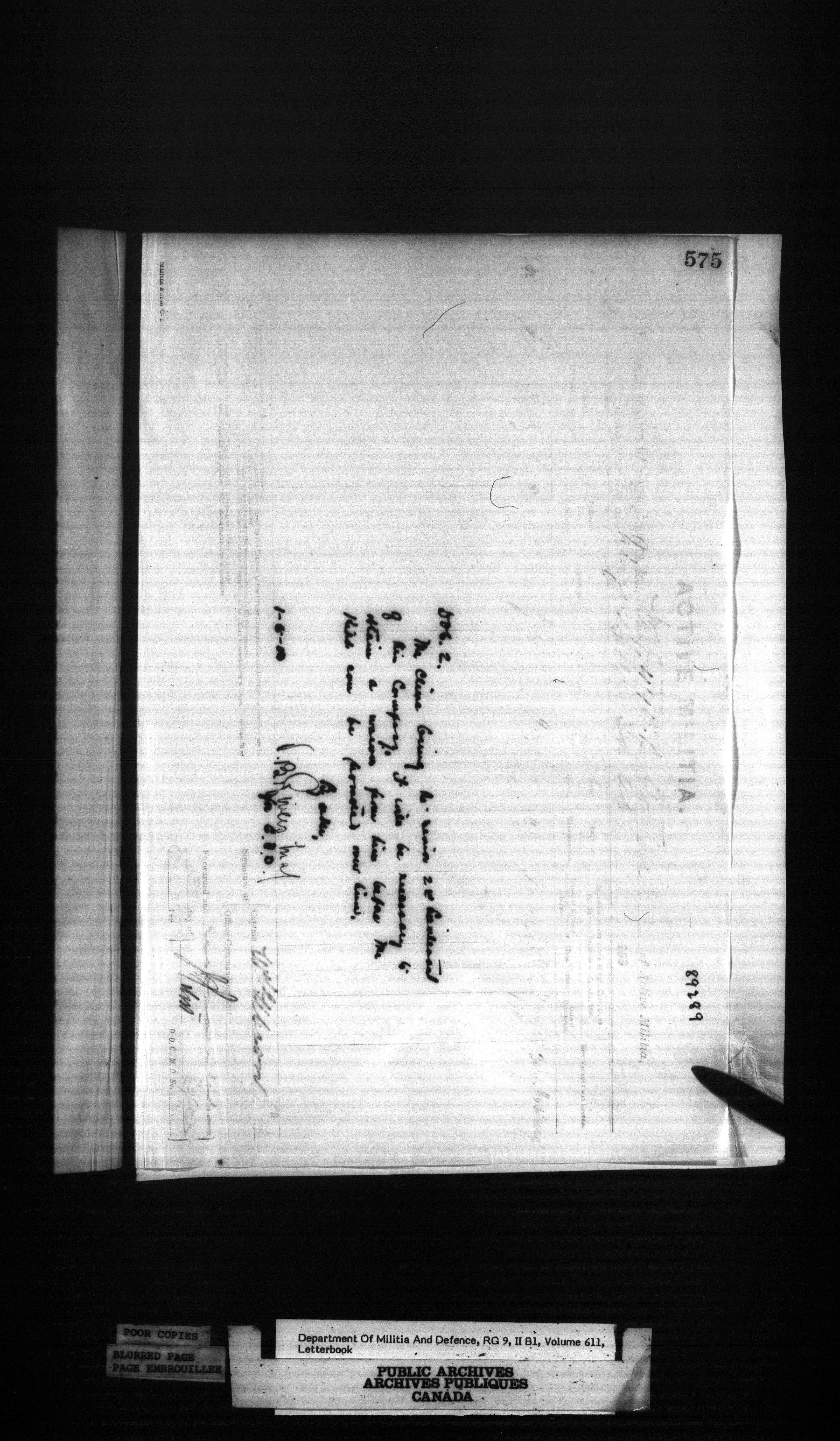 Correspondence of the General Officer Commanding (GOC) of the Canadian Militia and his predecessor, the Adjutant General - 350