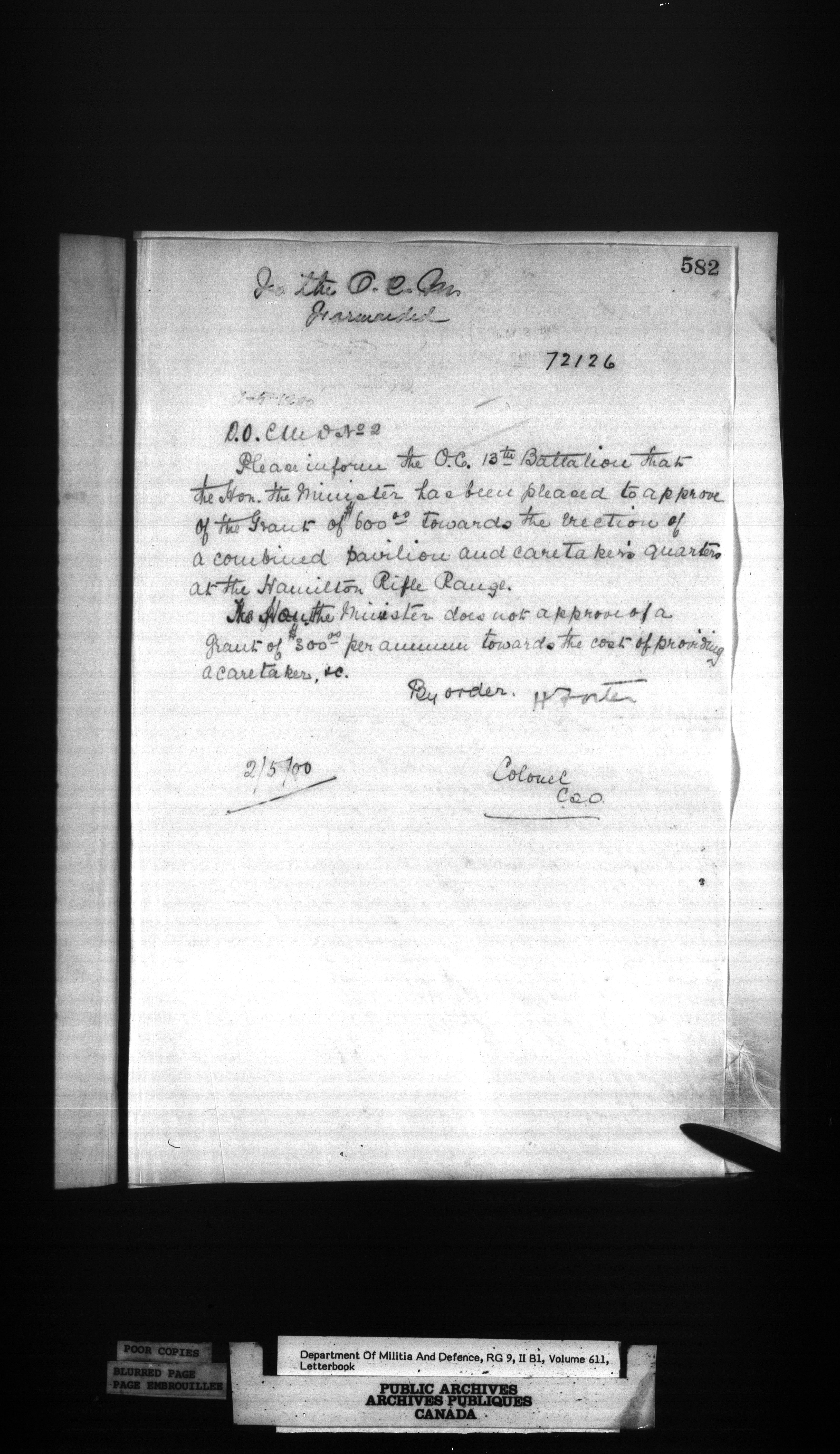 Correspondence of the General Officer Commanding (GOC) of the Canadian Militia and his predecessor, the Adjutant General - 350