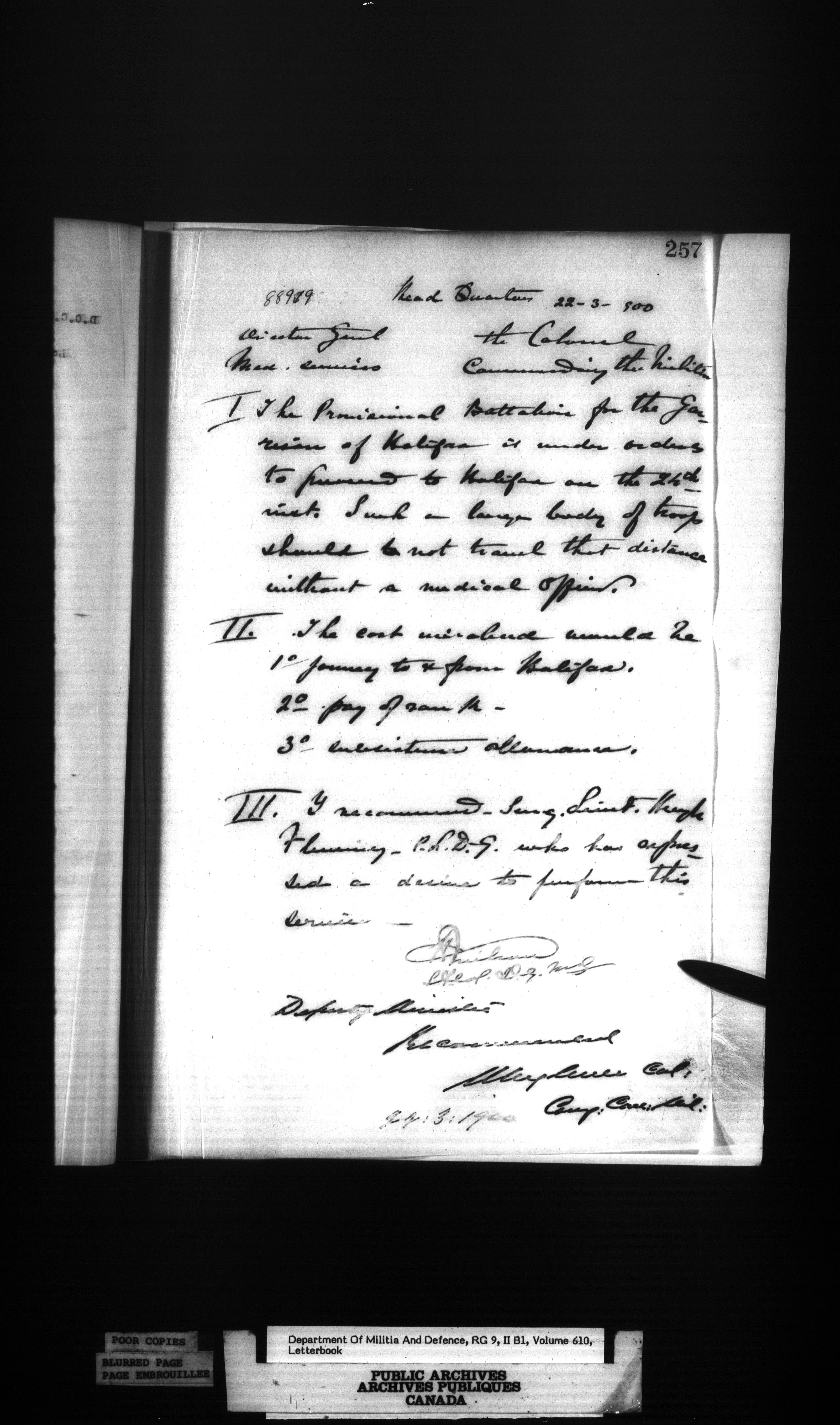 Correspondence of the General Officer Commanding (GOC) of the Canadian Militia and his predecessor, the Adjutant General - 350