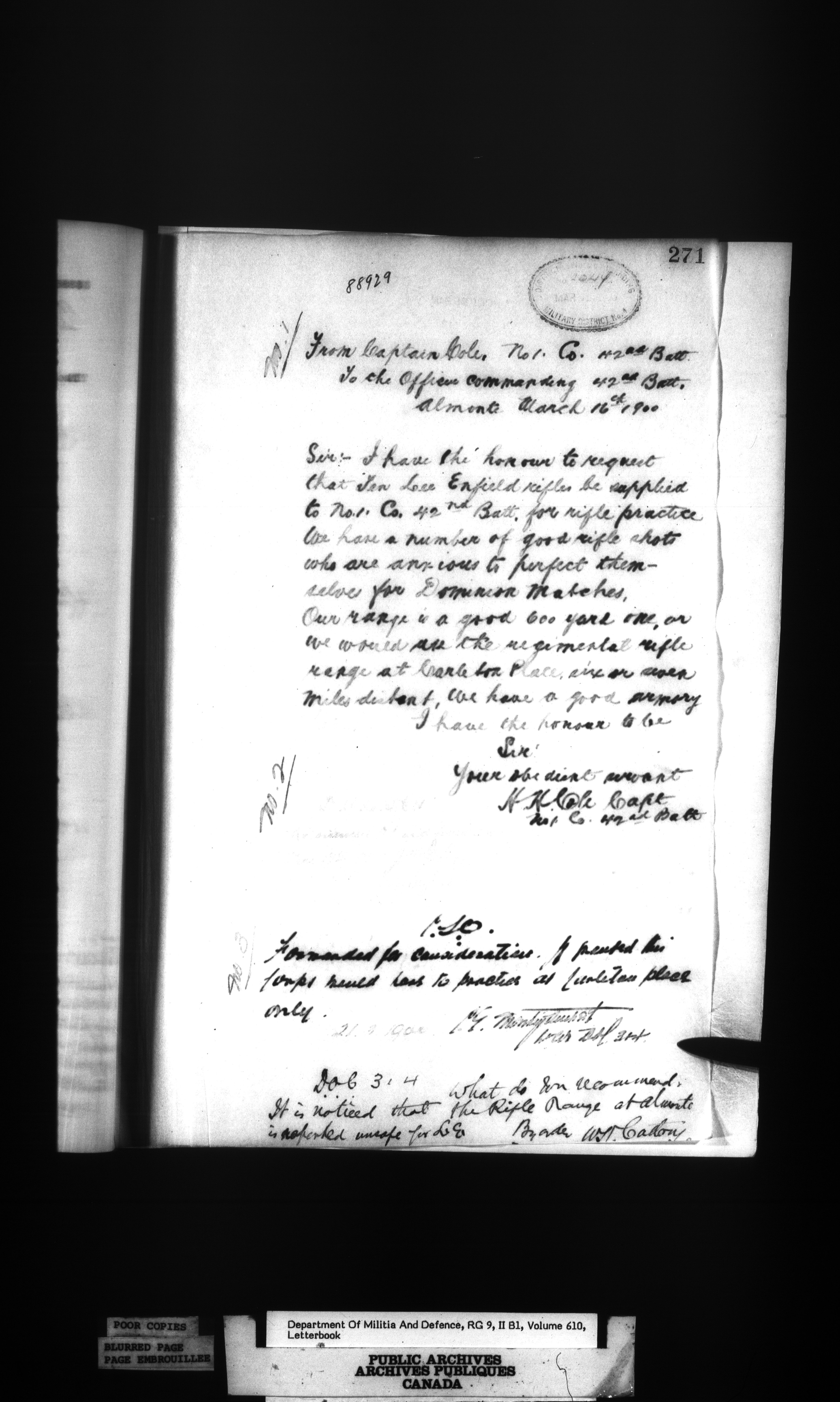 Correspondence of the General Officer Commanding (GOC) of the Canadian Militia and his predecessor, the Adjutant General - 350