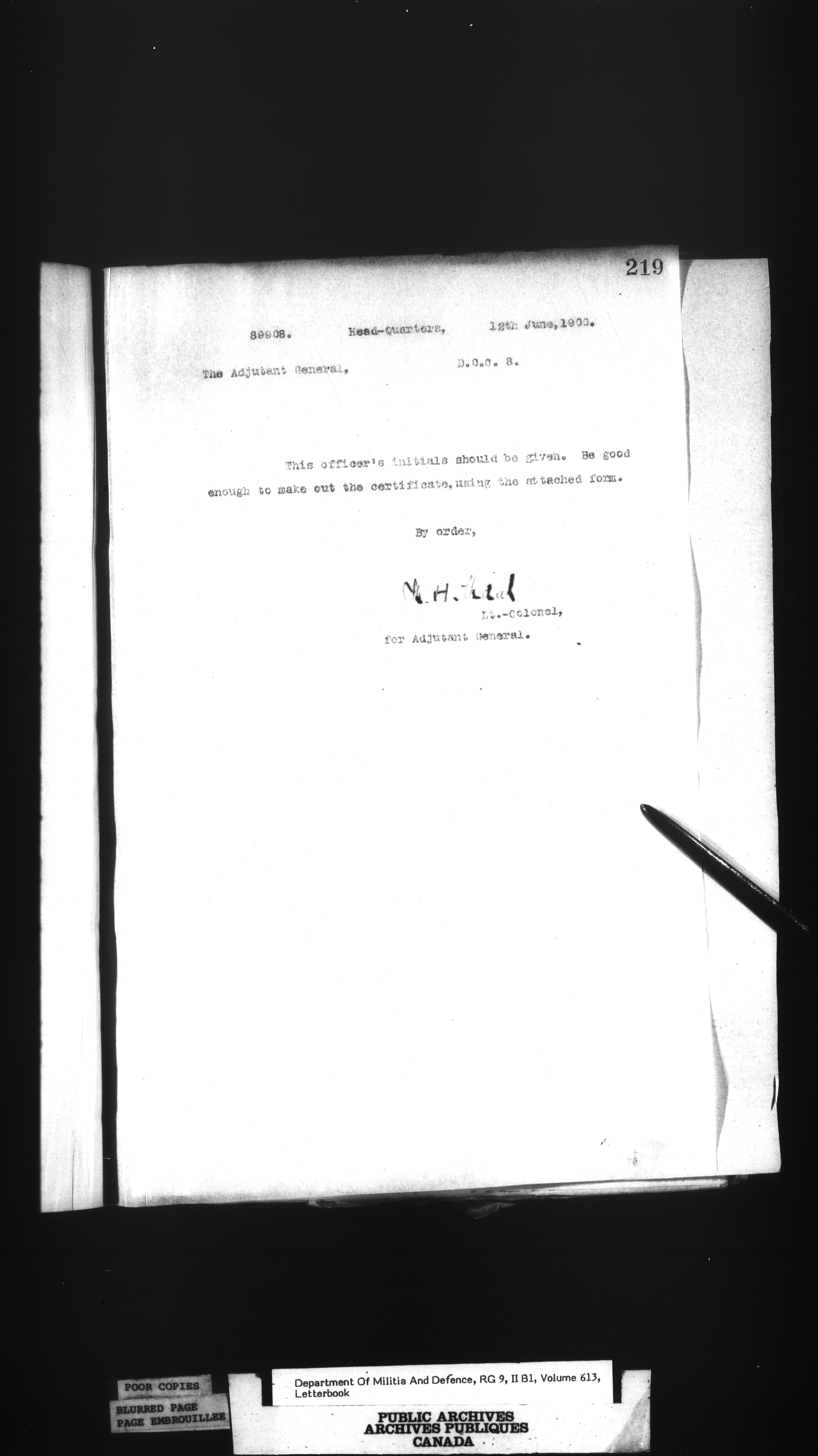 Correspondence of the General Officer Commanding (GOC) of the Canadian Militia and his predecessor, the Adjutant General - 352