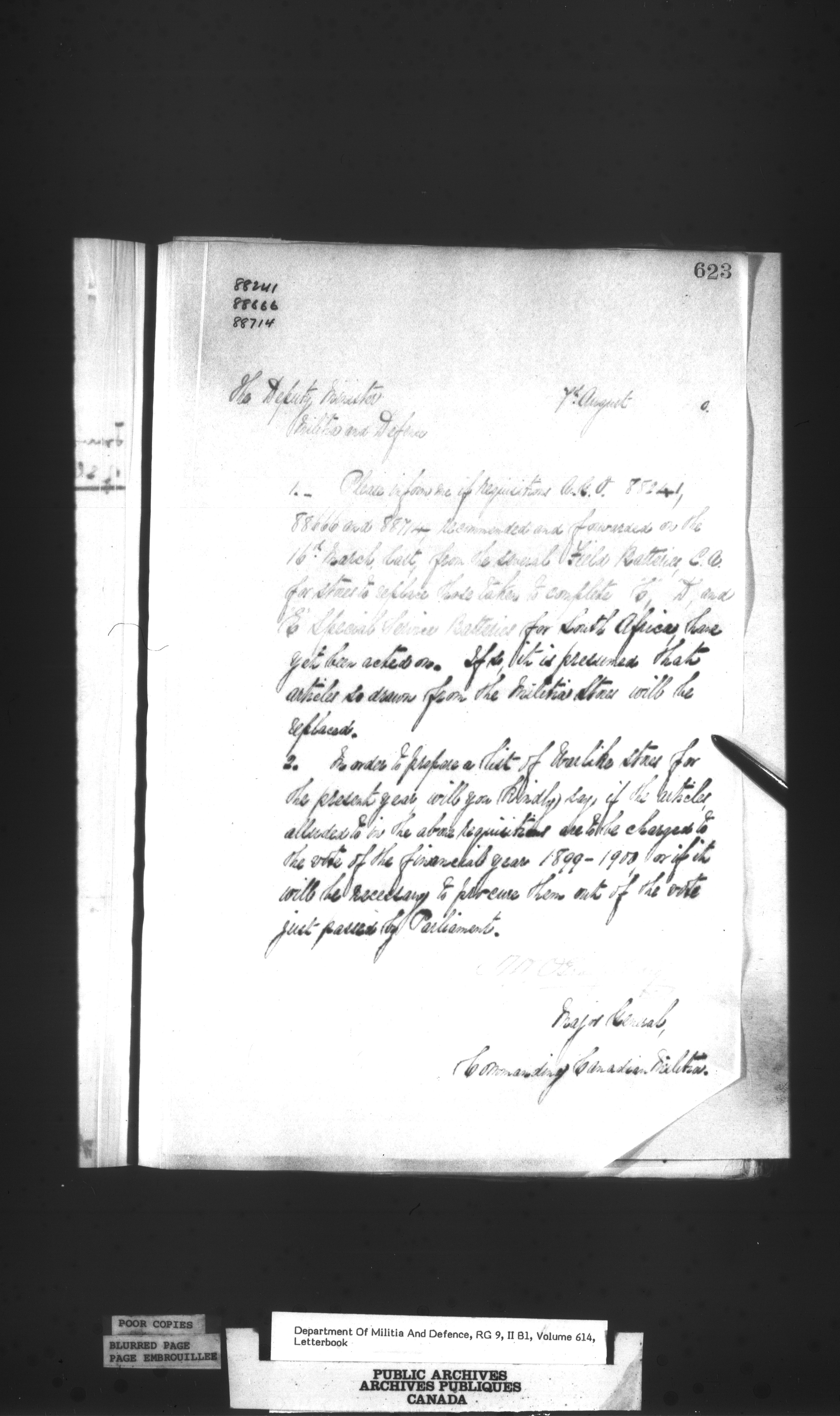 Correspondence of the General Officer Commanding (GOC) of the Canadian Militia and his predecessor, the Adjutant General - 353