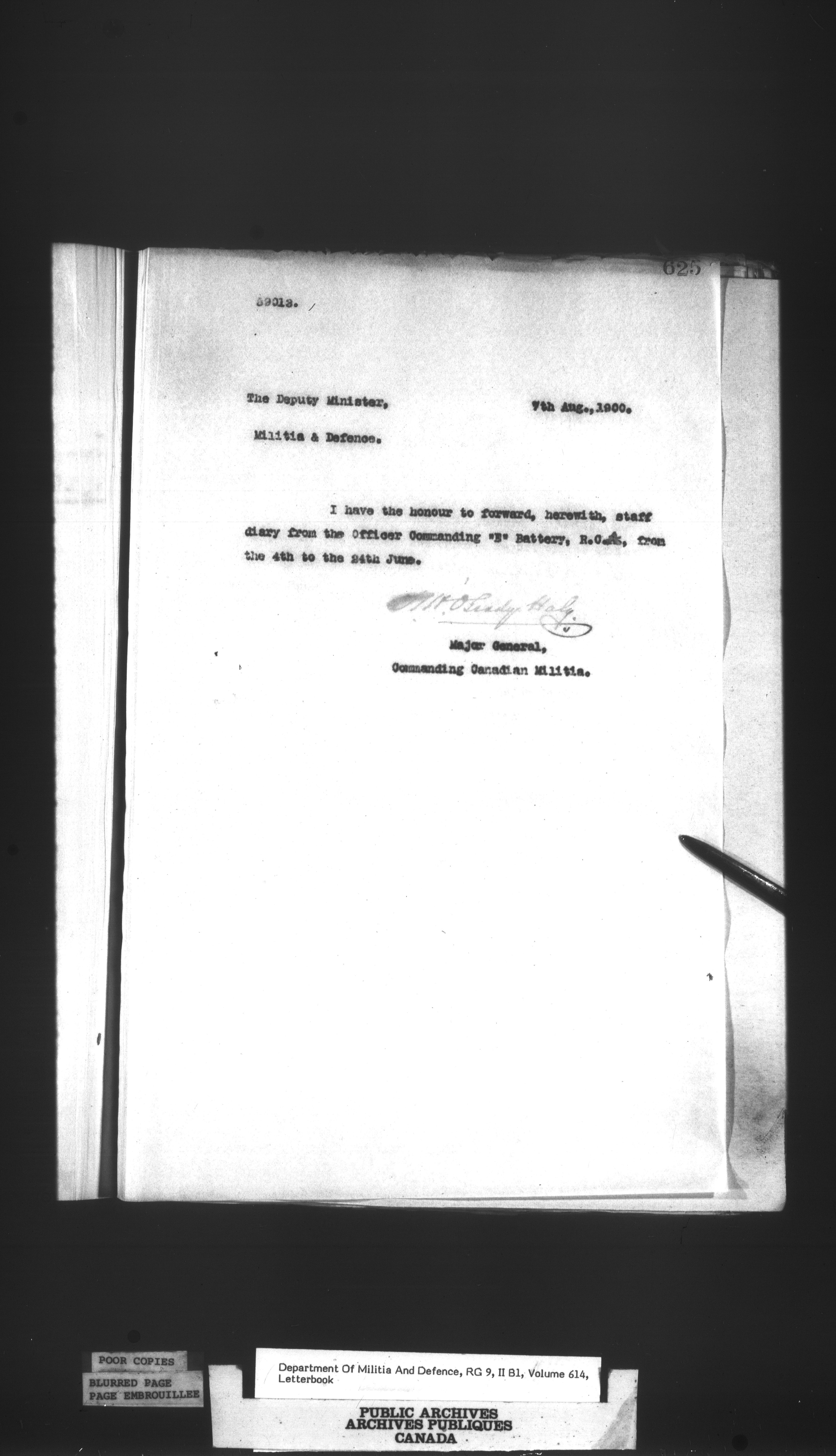 Correspondence of the General Officer Commanding (GOC) of the Canadian Militia and his predecessor, the Adjutant General - 353