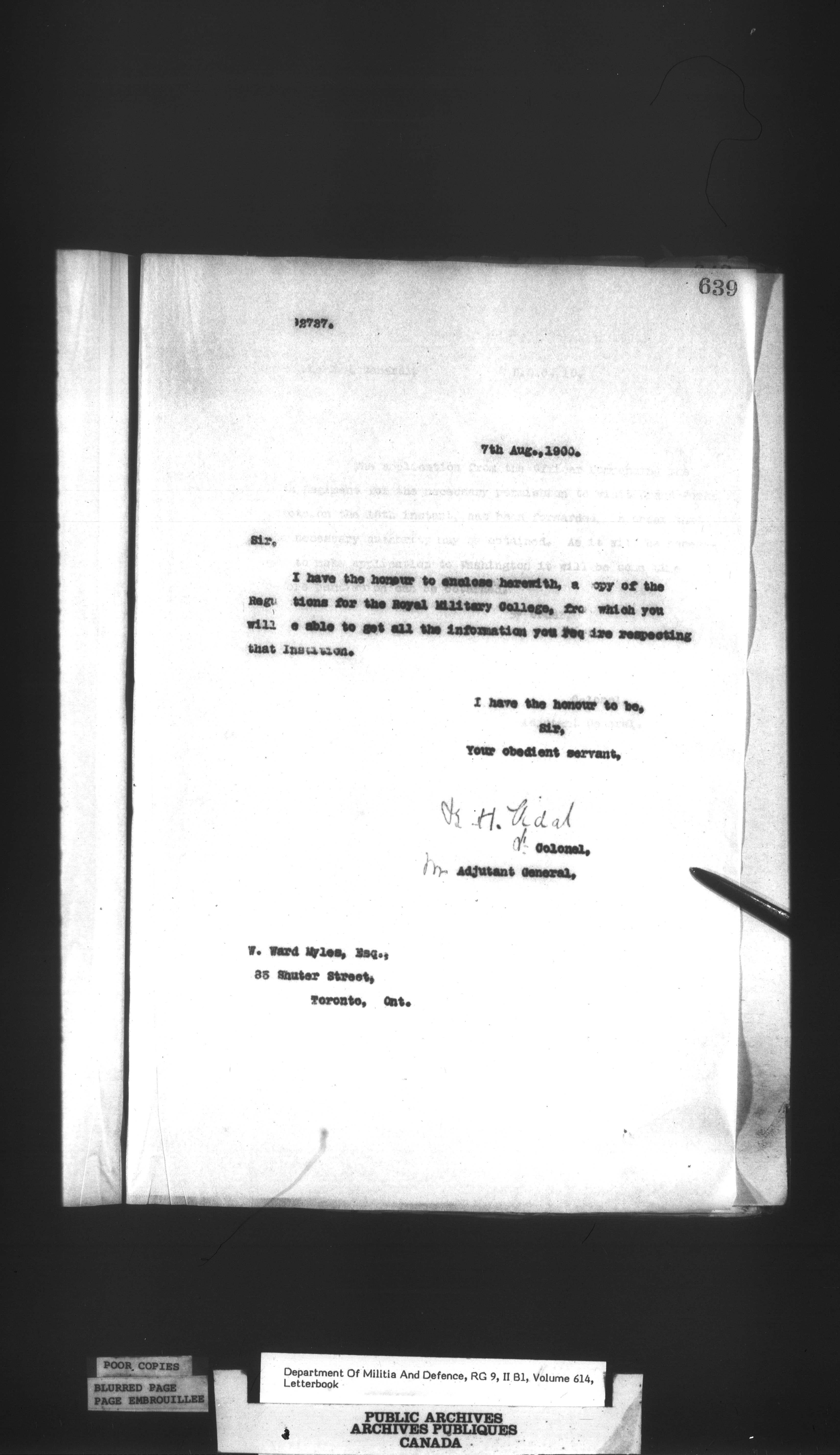 Correspondence of the General Officer Commanding (GOC) of the Canadian Militia and his predecessor, the Adjutant General - 353
