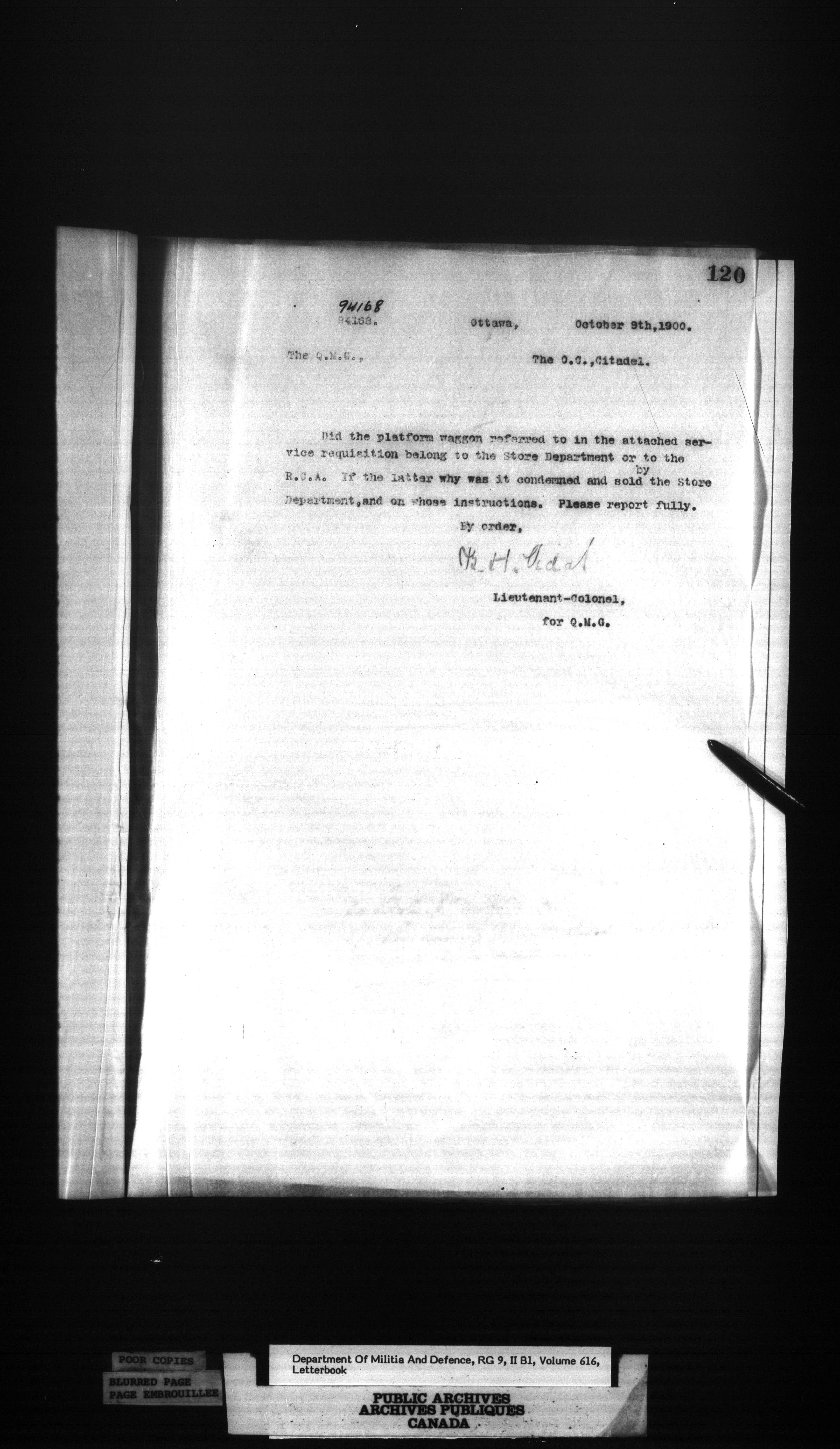 Correspondence of the General Officer Commanding (GOC) of the Canadian Militia and his predecessor, the Adjutant General : T-354