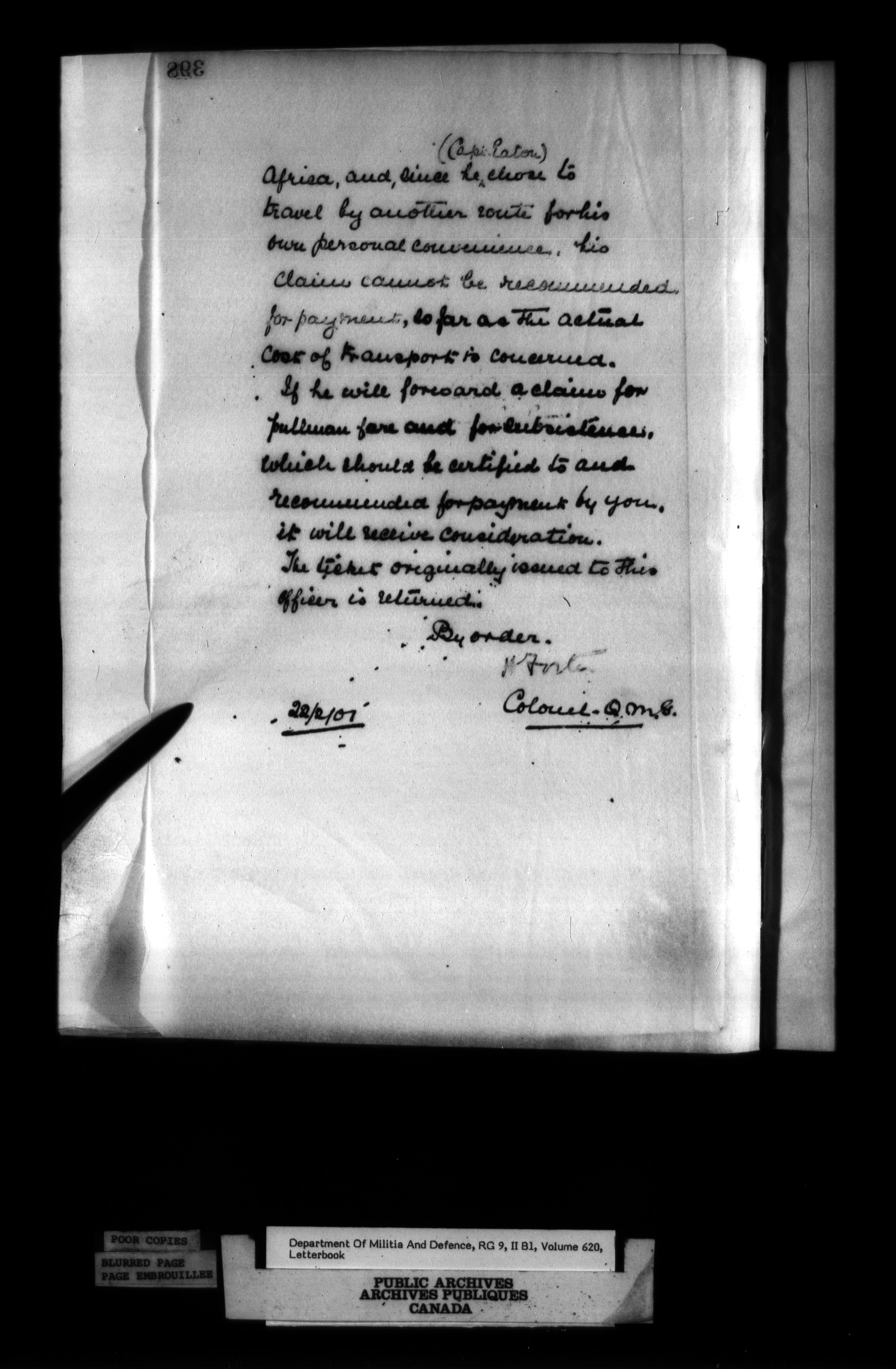 Correspondence of the General Officer Commanding (GOC) of the Canadian Militia and his predecessor, the Adjutant General - 356