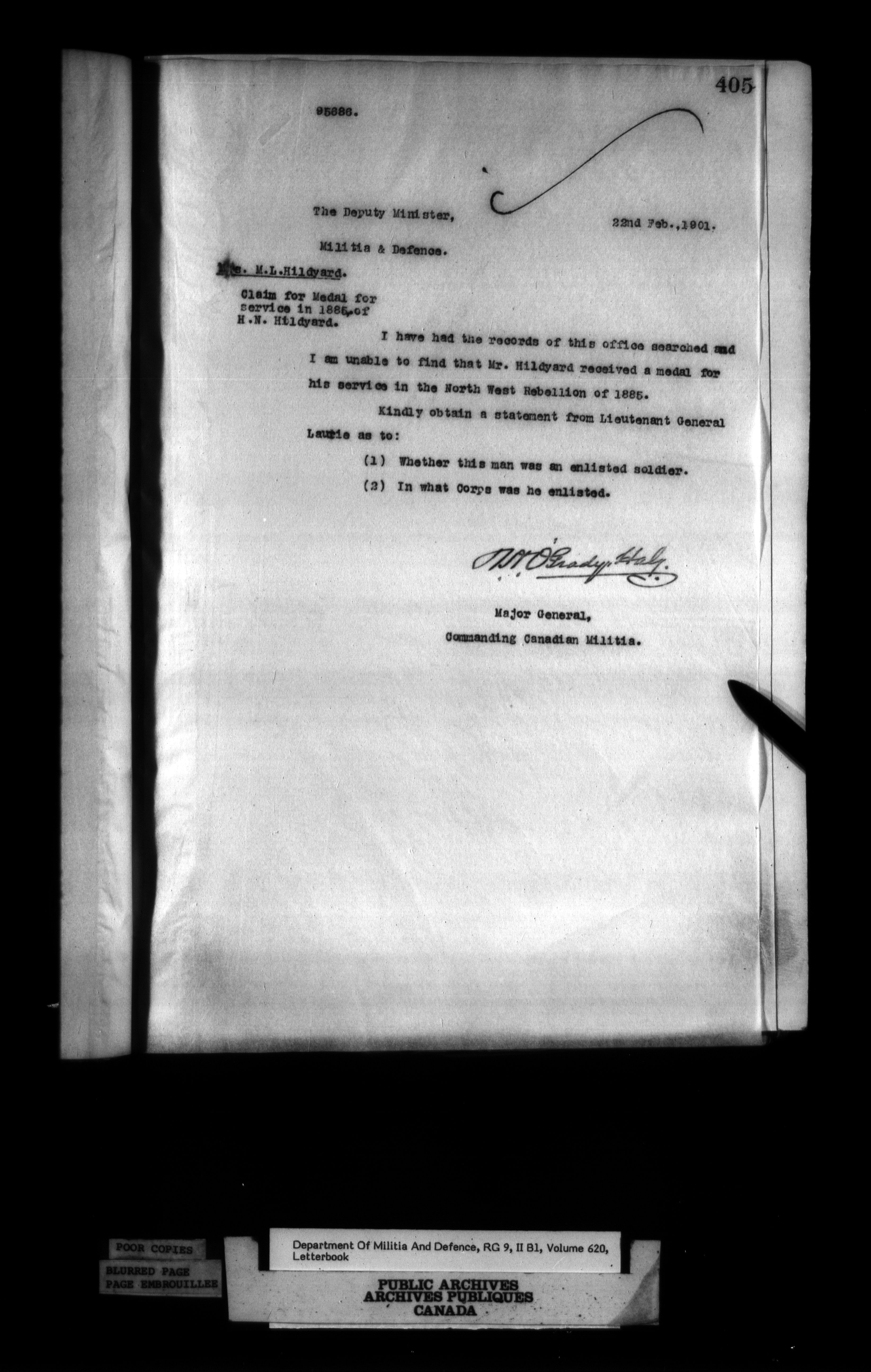 Correspondence of the General Officer Commanding (GOC) of the Canadian Militia and his predecessor, the Adjutant General - 356