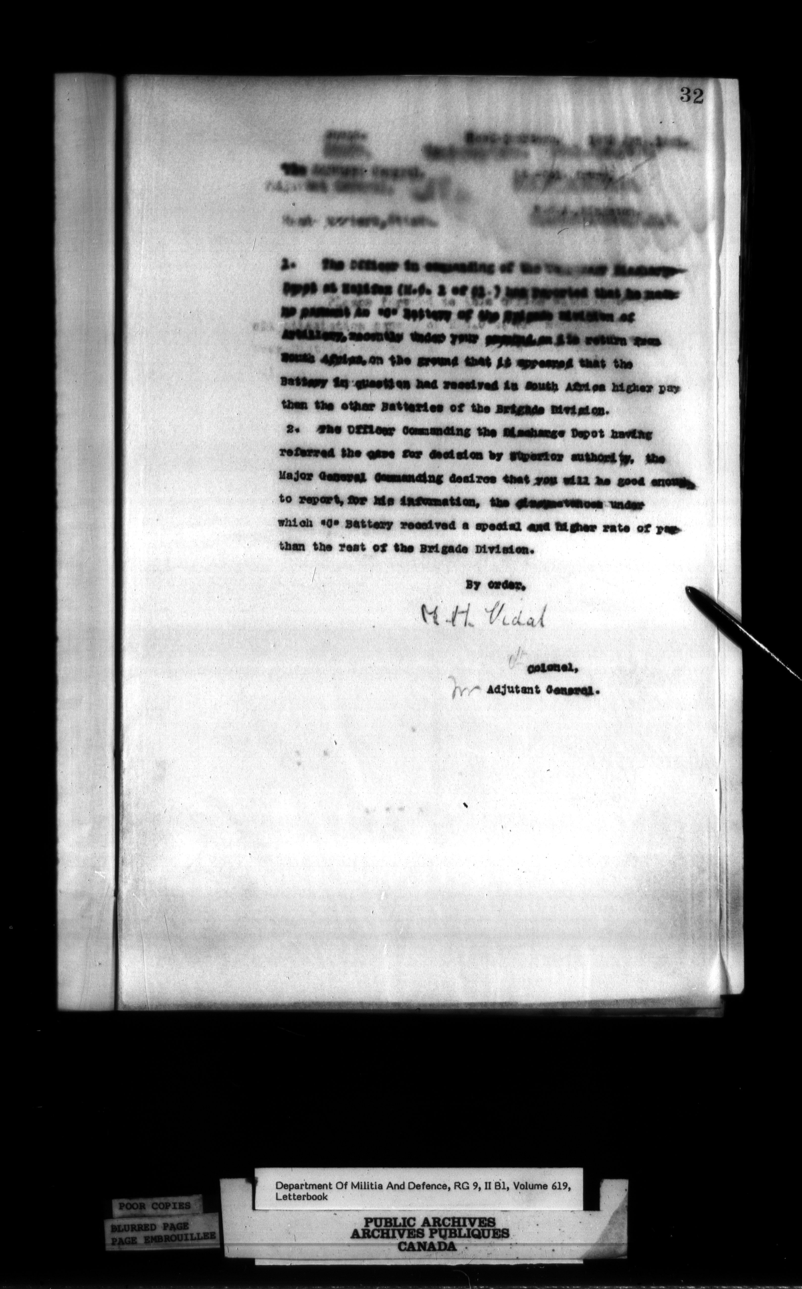Correspondence of the General Officer Commanding (GOC) of the Canadian Militia and his predecessor, the Adjutant General - 356
