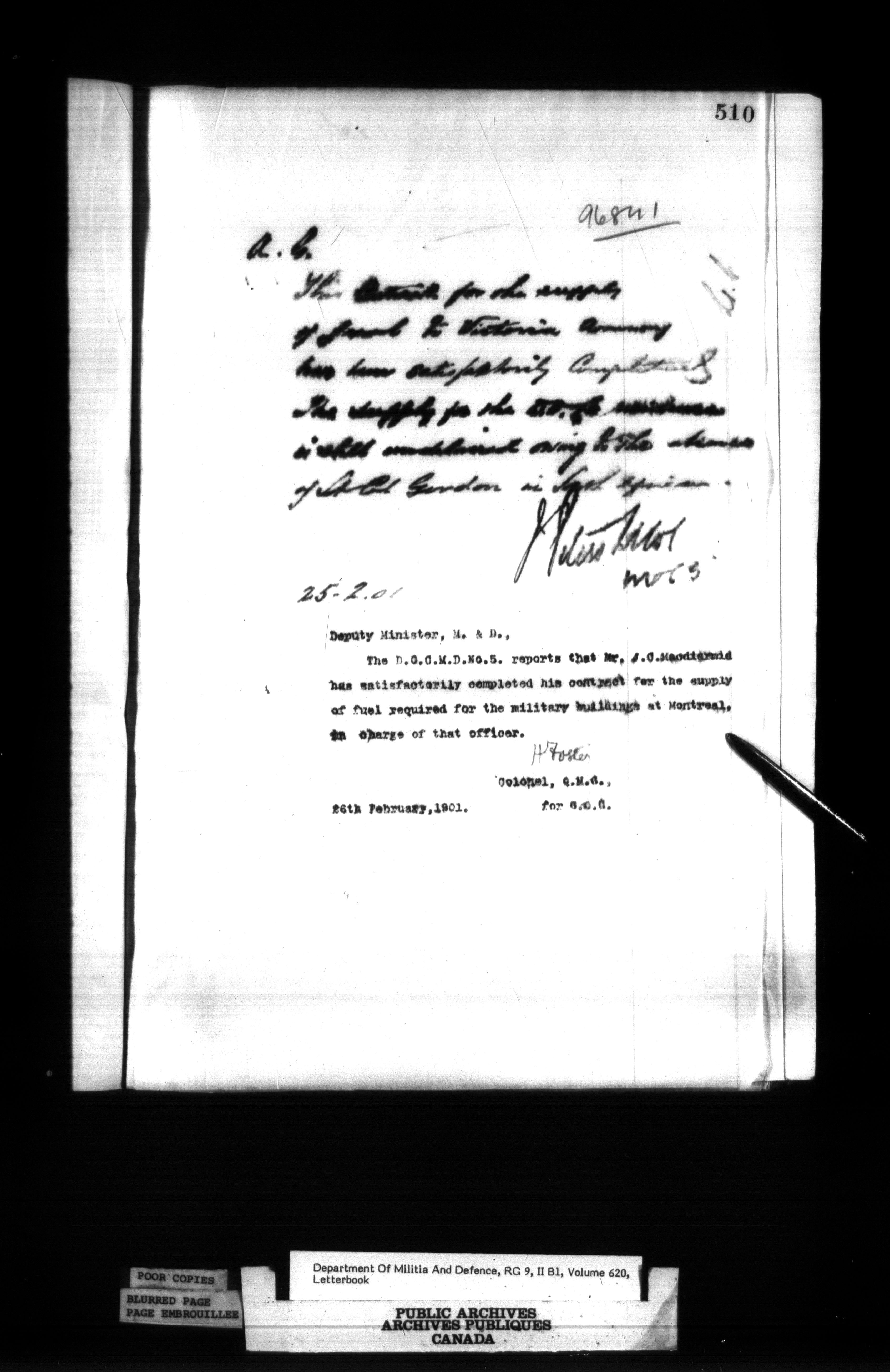 Correspondence of the General Officer Commanding (GOC) of the Canadian Militia and his predecessor, the Adjutant General - 357
