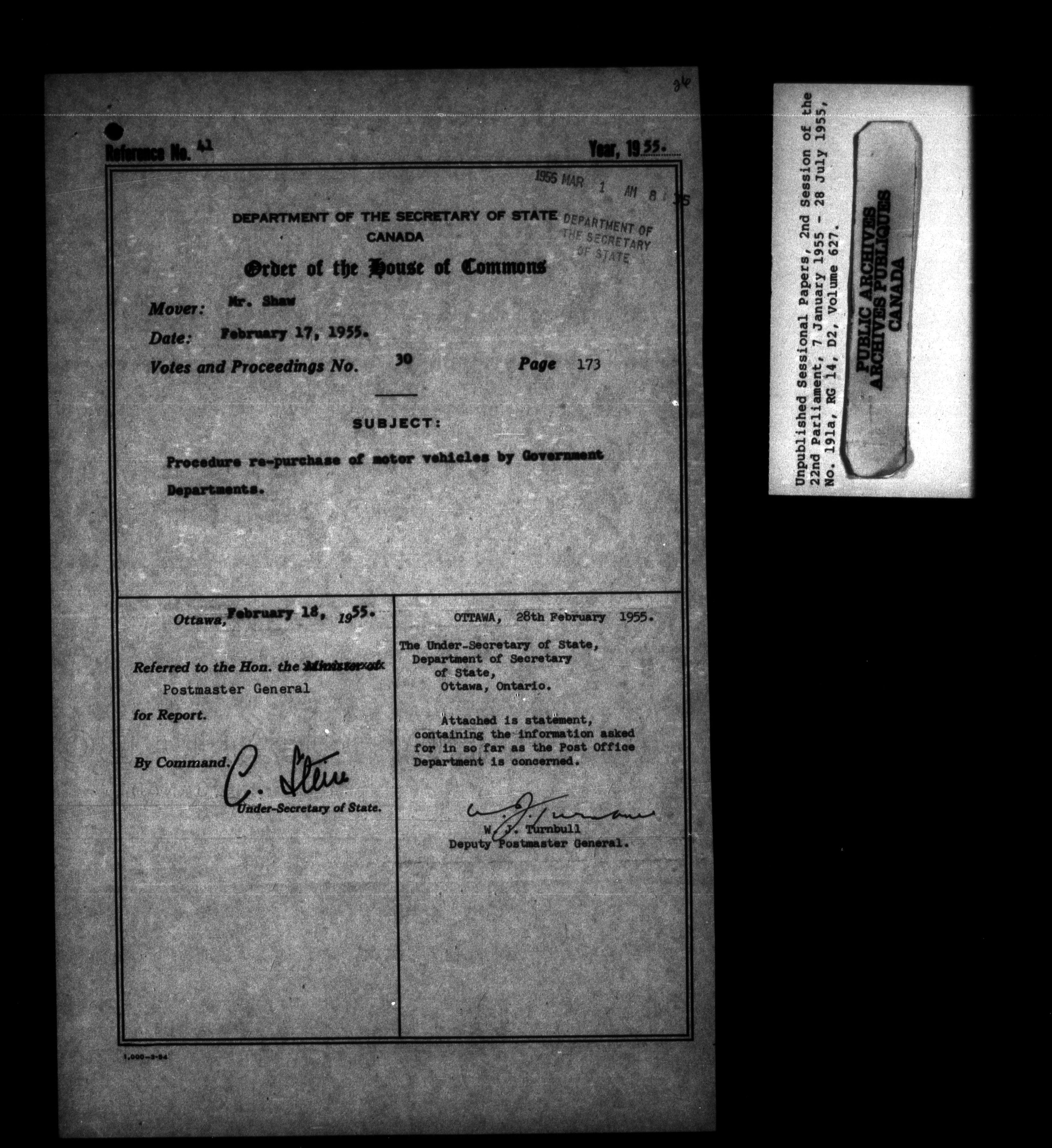 Unpublished sessional papers, 2nd Session of 22nd Parliament - 3590
