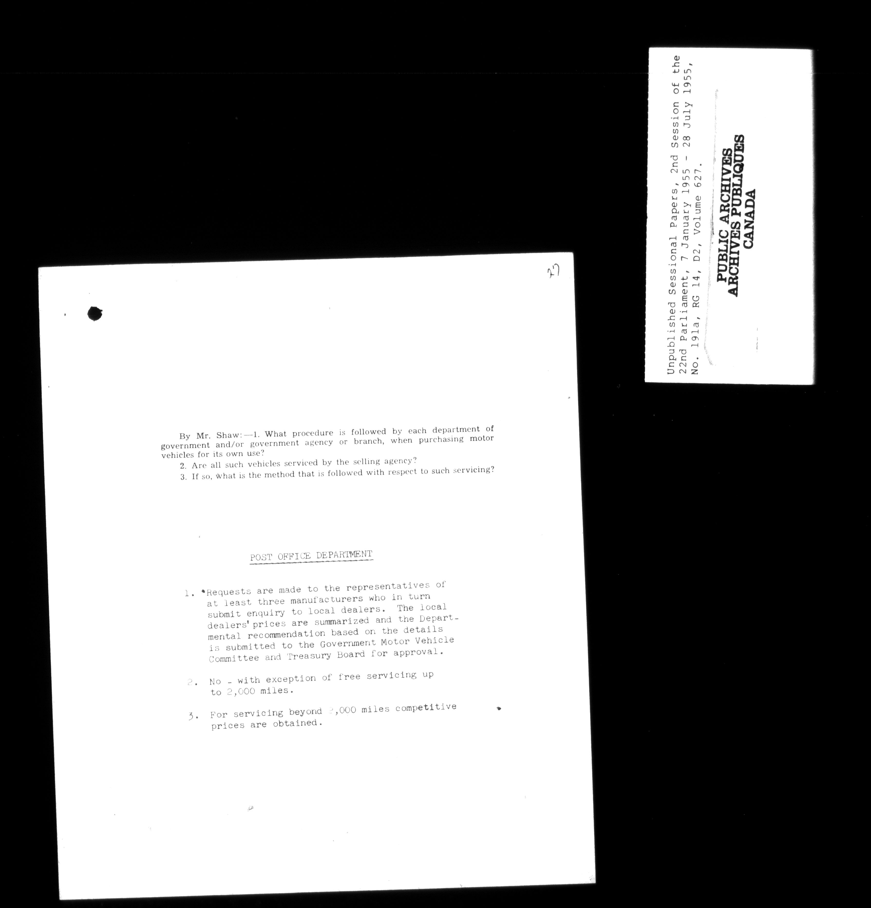 Unpublished sessional papers, 2nd Session of 22nd Parliament - 3590