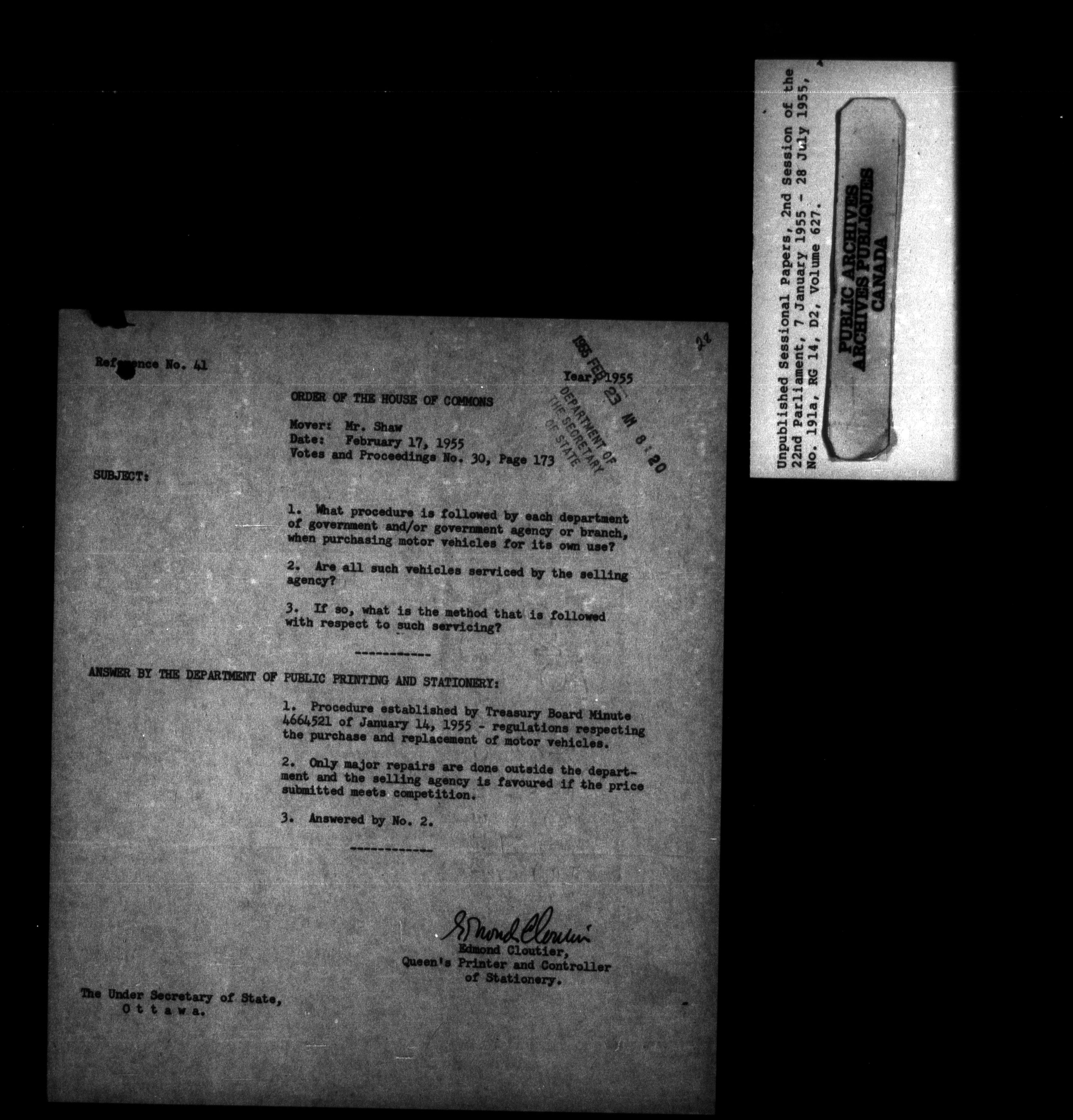 Unpublished sessional papers, 2nd Session of 22nd Parliament - 3590