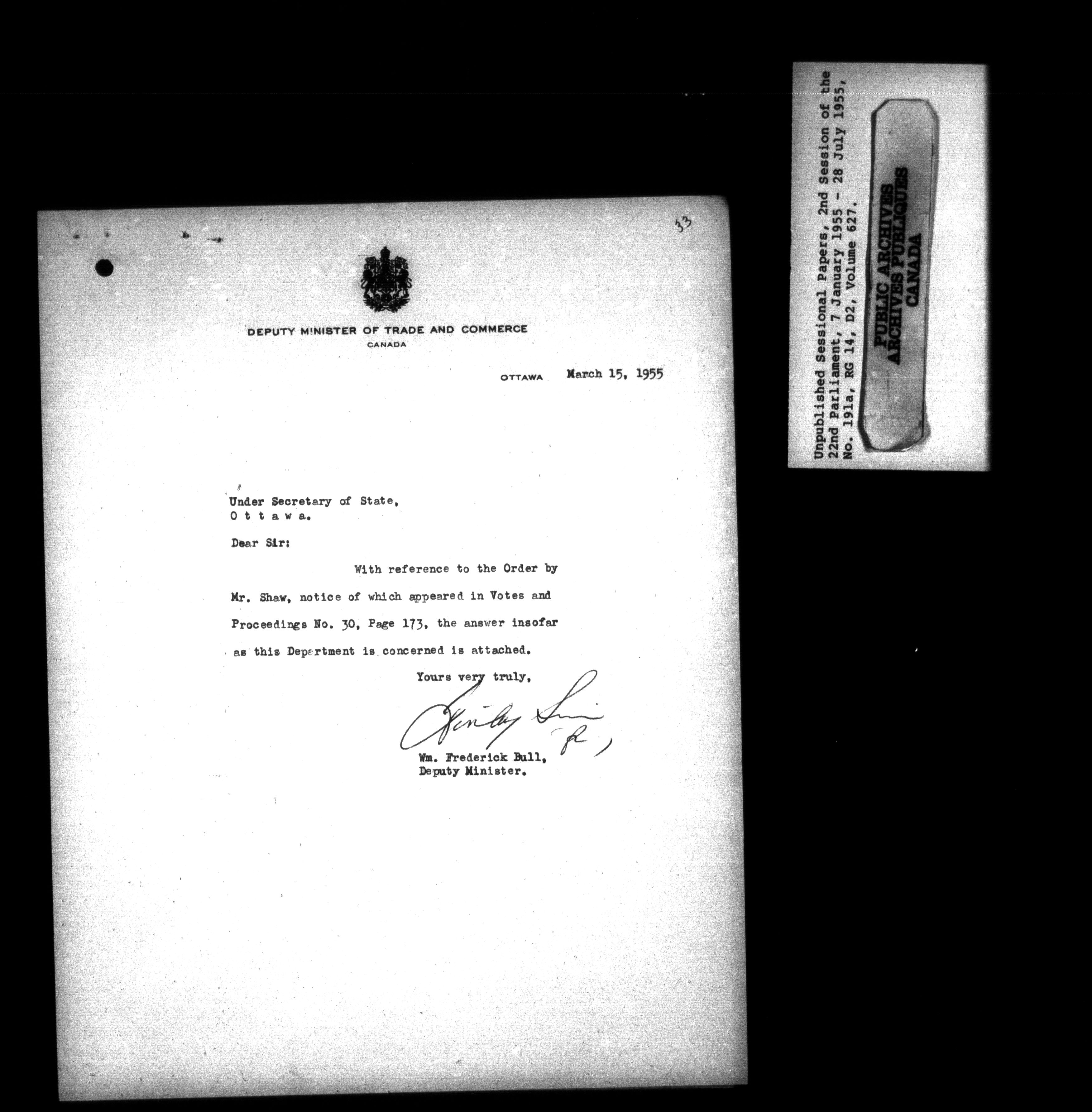 Unpublished sessional papers, 2nd Session of 22nd Parliament - 3590