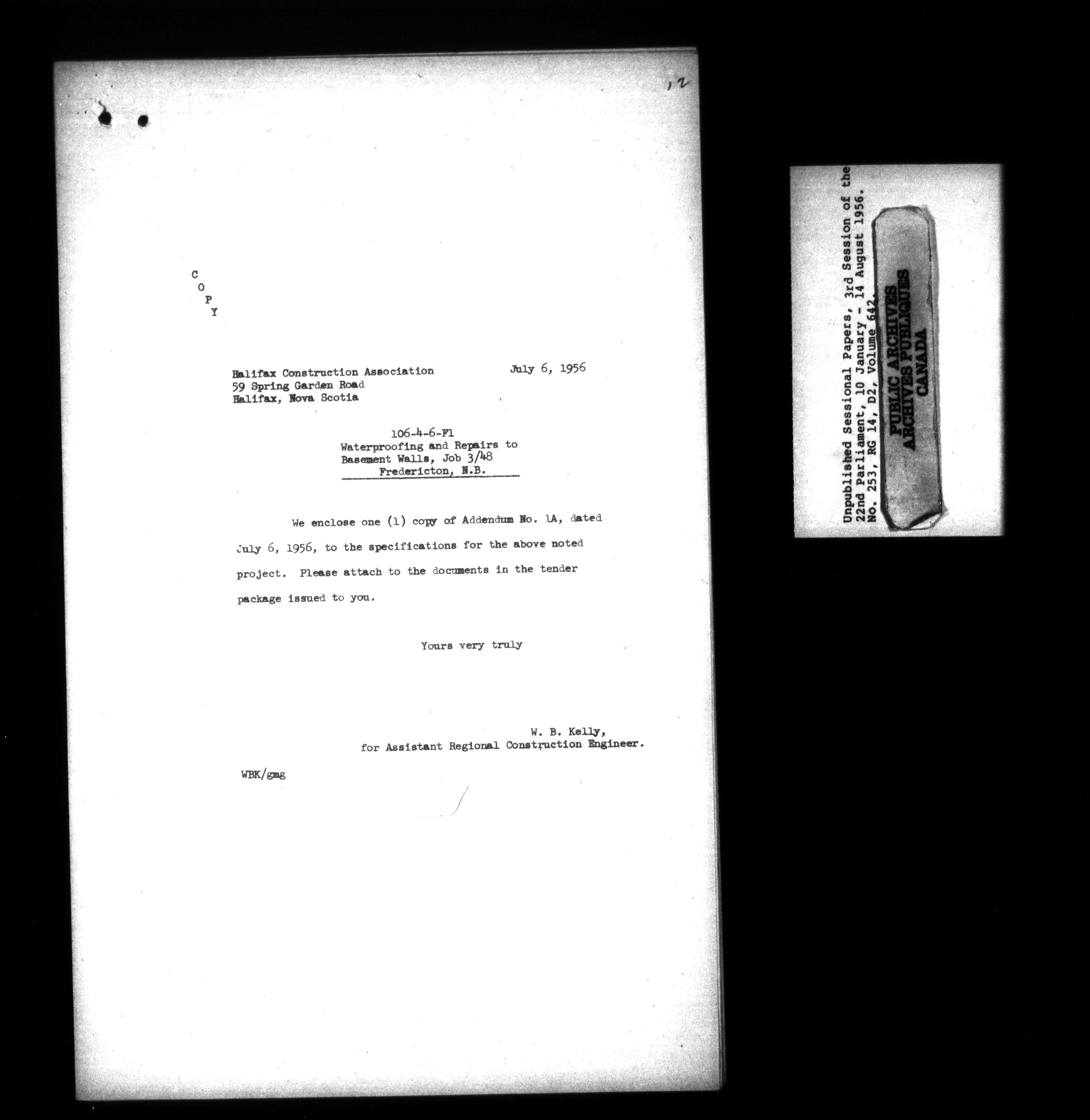 Unpublished sessional papers, 3rd Session, 22nd Parliament - 3597