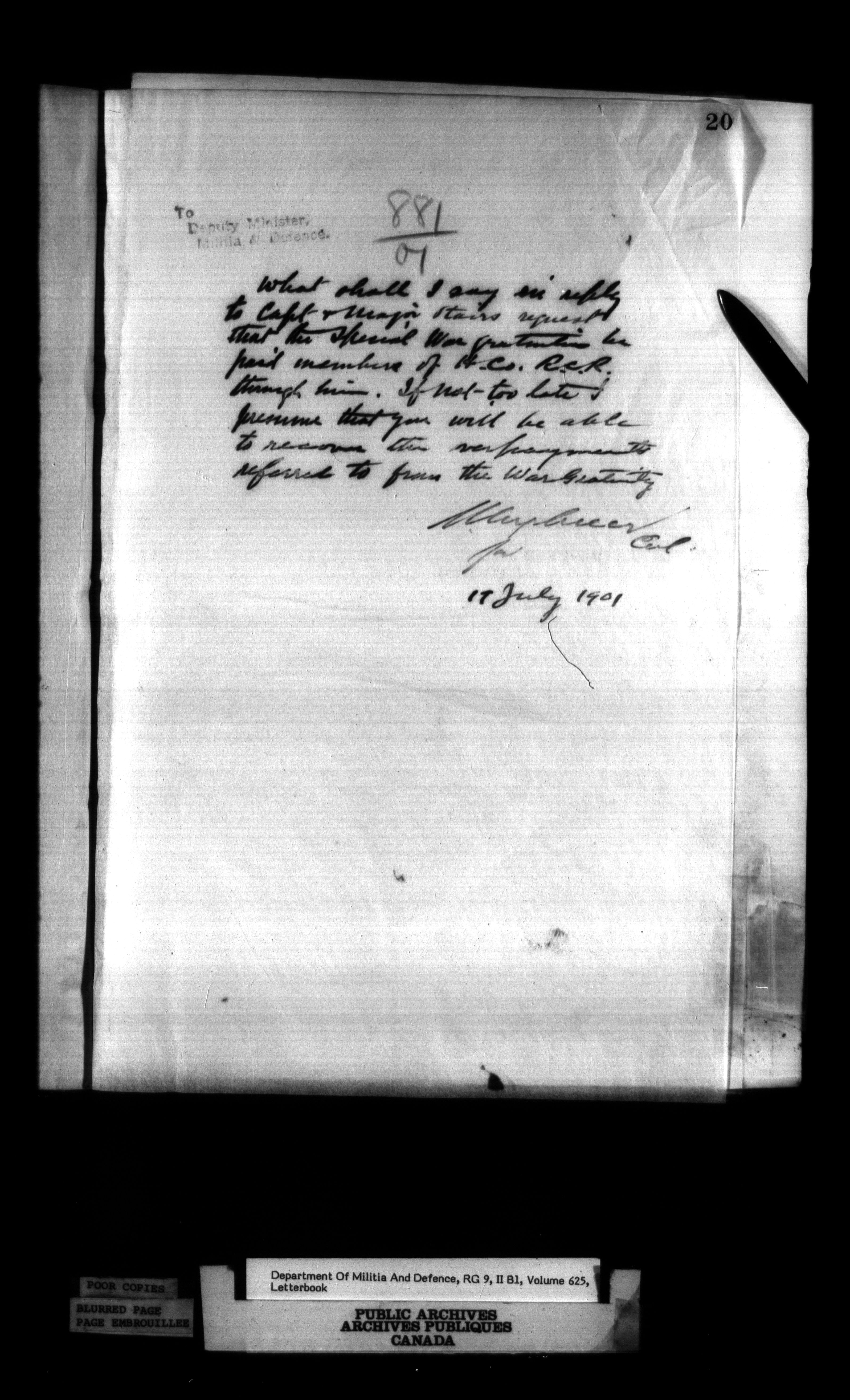 Correspondence of the General Officer Commanding (GOC) of the Canadian Militia and his predecessor, the Adjutant General - 360