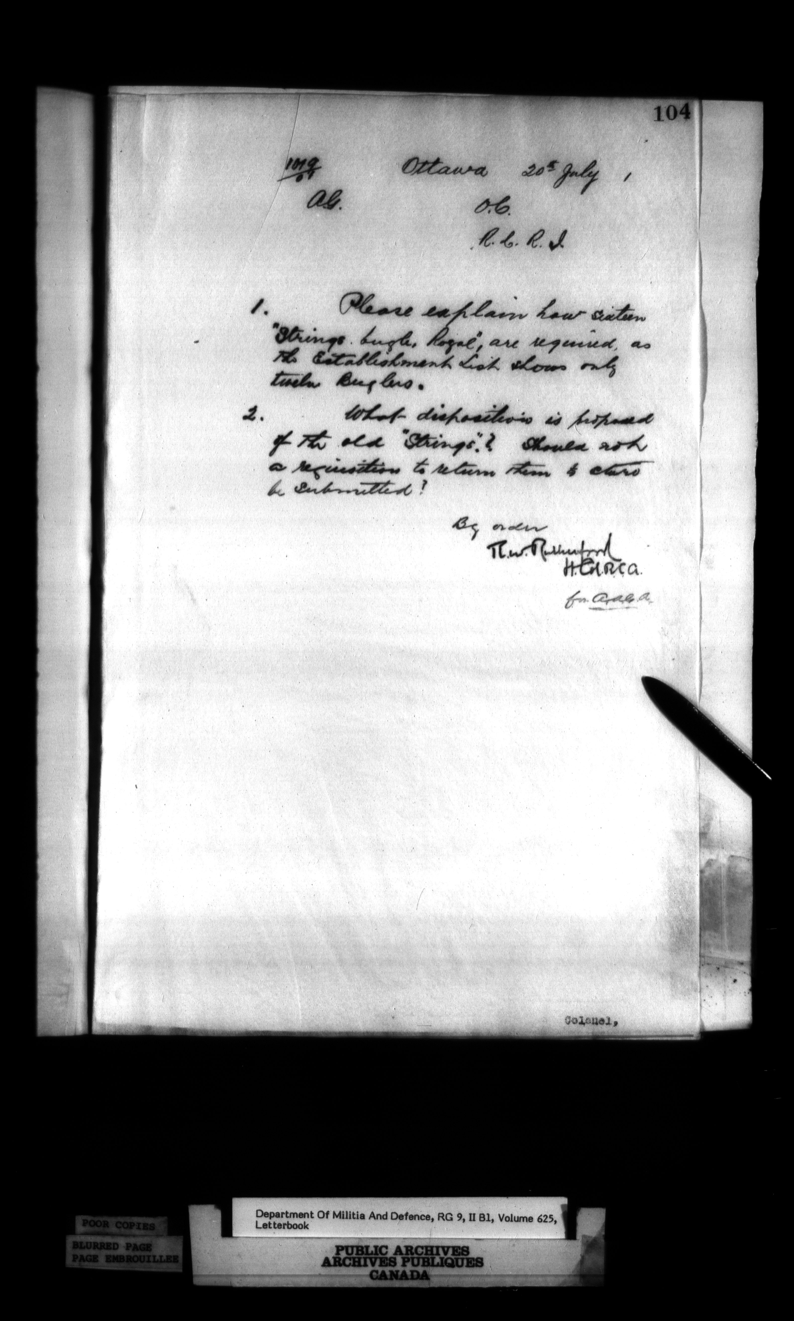 Correspondence of the General Officer Commanding (GOC) of the Canadian Militia and his predecessor, the Adjutant General - 360