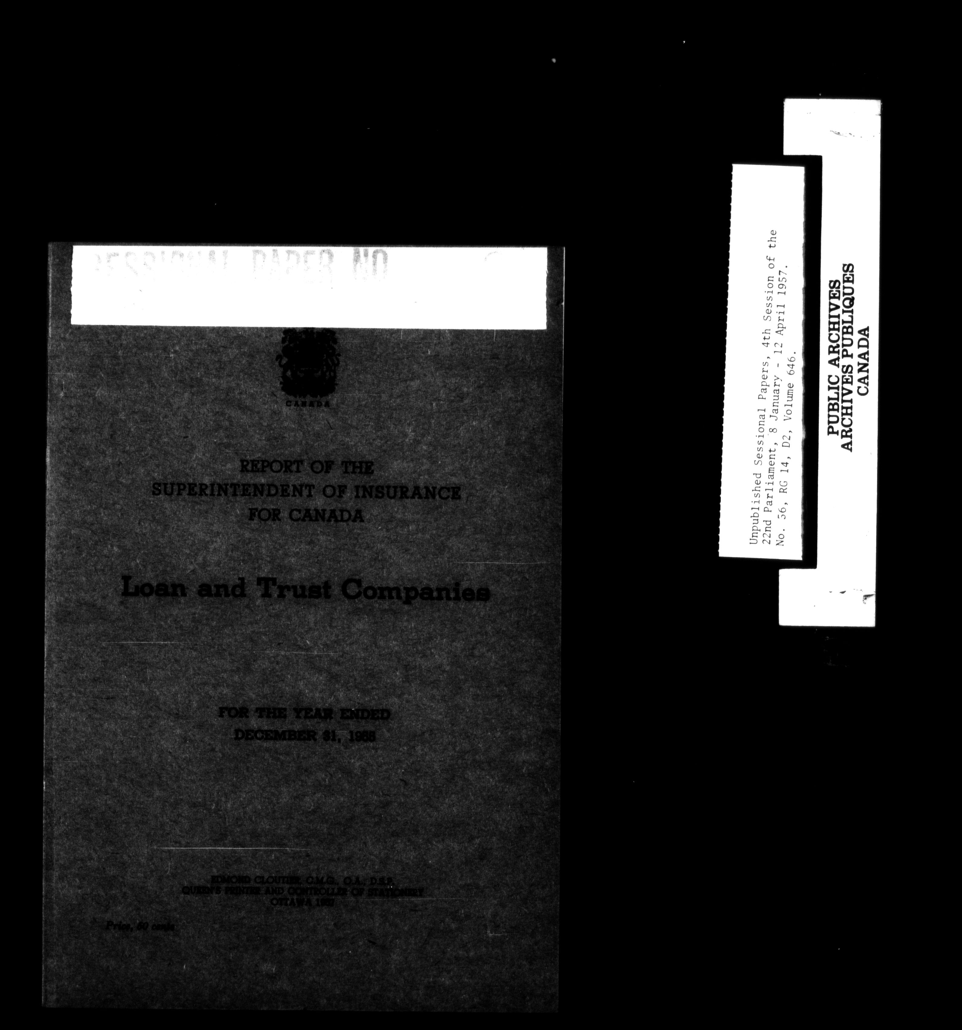 Unpublished sessional papers, 5th Session, 22nd Parliament - 3600